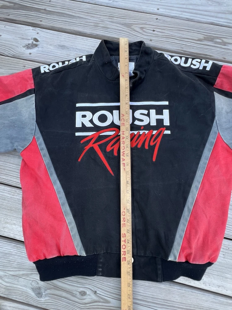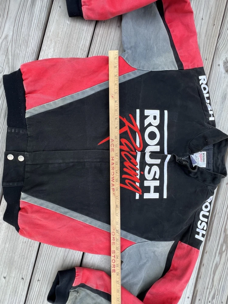 This Roush Racing jacket is a must-have for NASCAR fans! The vintage look gives it so much character, and even with some wear, it’s still in great shape. Fits true to size, super comfortable, and the zip-up design makes it easy to throw on. Perfect for collectors or anyone who loves racing history. Definitely a unique piece worth adding to your wardrobe!