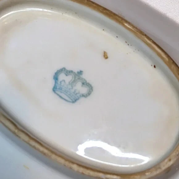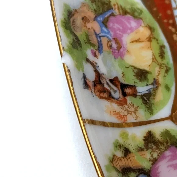 -Vintage Courting Couple Pickle/Relish Dish -Hand painted -Used condition, two chips -10"