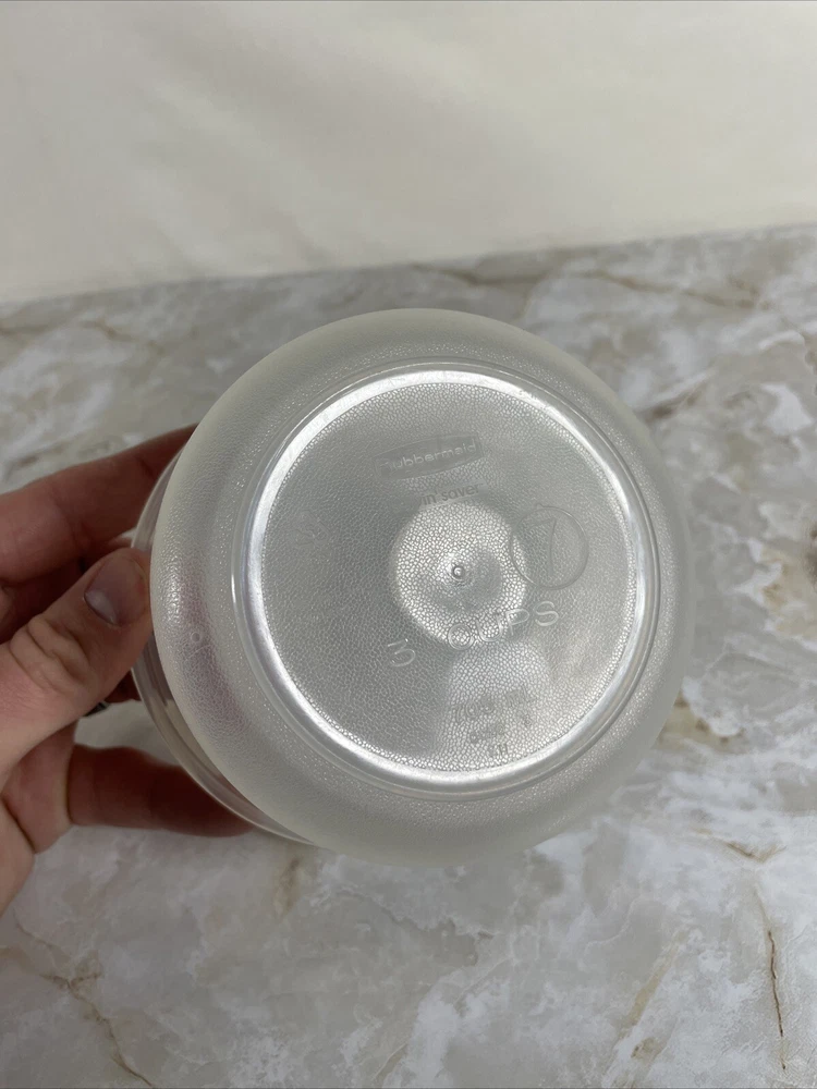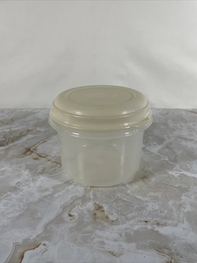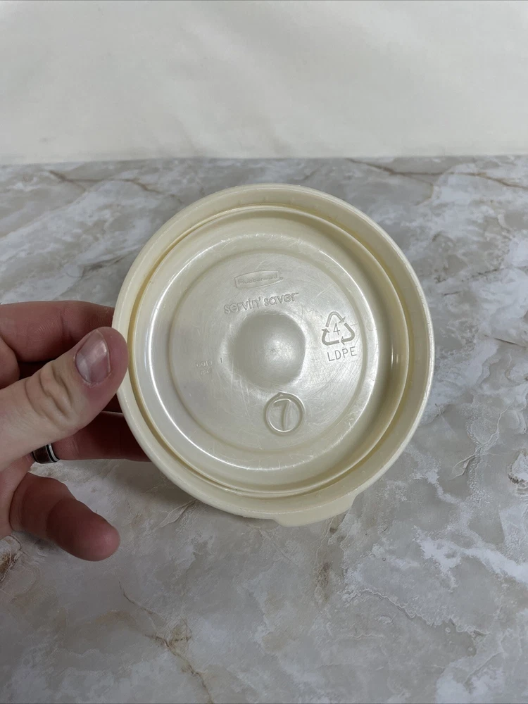 Number of Items in Set:1Shape:RoundCountry/Region of Manufacture:UnknownType:Food Storage ContainerItem Length:5Brand:RubbermaidModified Item:NoItem Width:5Item Height:4Original/Licensed Reproduction:OriginalTheme:FoodMaterial:PlasticSet Includes:LidVintage:Yes
