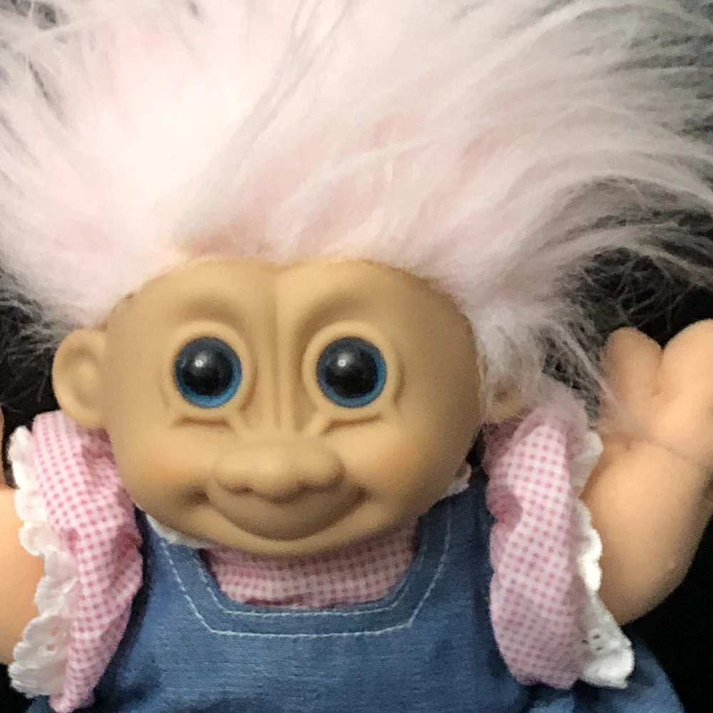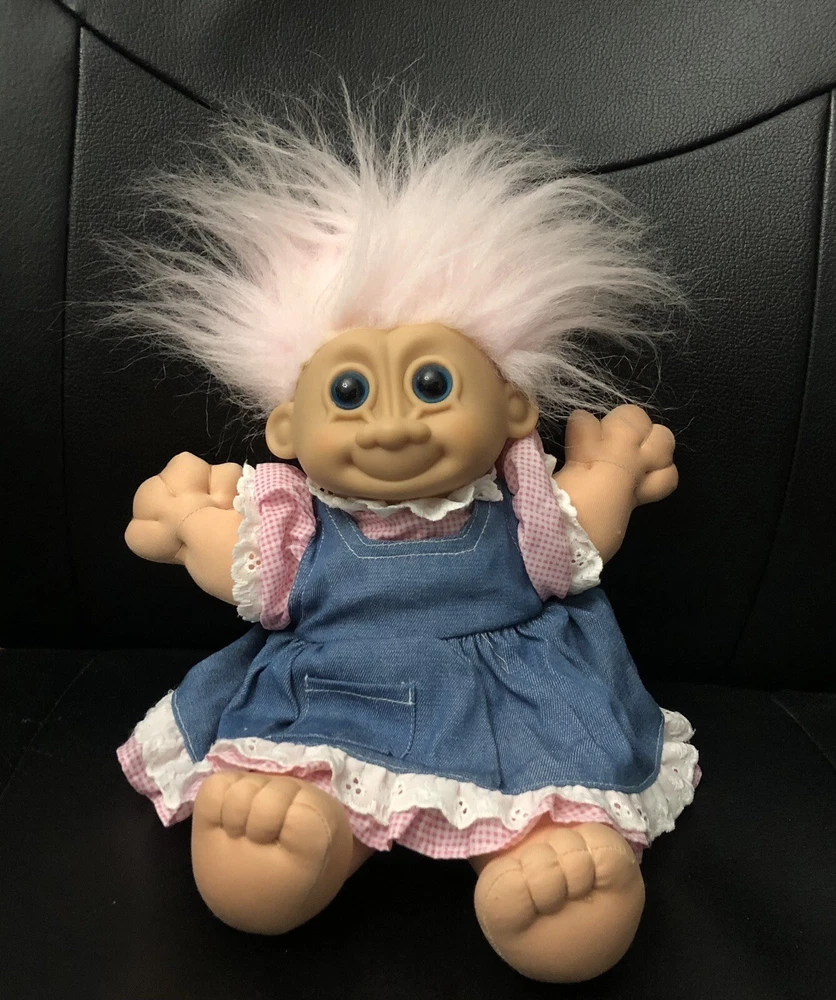 Vintage Russ Berrie 12"Troll Doll item # 2345 Pink Hair & Blue Eyes Soft Cloth. Note: Troll and clothes are clean. Thank you for stopping by!