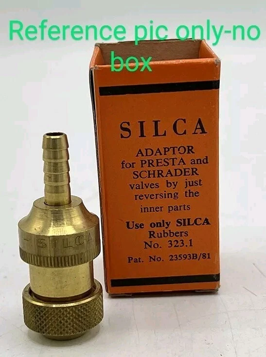 Vintage SILCA press-on chuck head for use with floor pump. TESTED AND WORKS WELL. I REPLACED THE BLACK RUBBER GASKET WITH A NEW ONE. The black gasket is reversible for Presta or Schrader valves. All brass construction stamped "SILCA - MADE IN ITALY". I included a pic I found of one with the original box but there is no original box/packaging included in this sale. The Lansing Bike Cooperative is a non-profit bicycle education shop serving the greater Lansing, MI area. We are an all-volunteer organization. All items will be shipped out on the first Thursday following your purchase. Thank you for supporting us!
