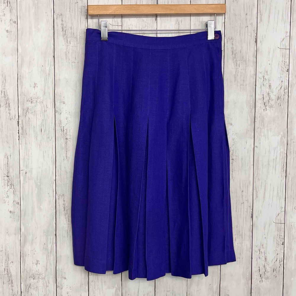 Vintage SK & Company Purple Pleated Flowy Knee Length Skirt Size: 8 60% Linen 40% Rayon Dry Clean Made in Hong Kong Waist- 13.5" Length- 24.5" Additional measurements available upon request All measurements are approximate All measurements are taken with item laying flat Double bust, waist, & hip for measurement all the way around Colors may differ based on others computer/phone/etc settings All pre owned items have been washed and steamed All pre owned items have been looked over for flaws and will be noted in listing
