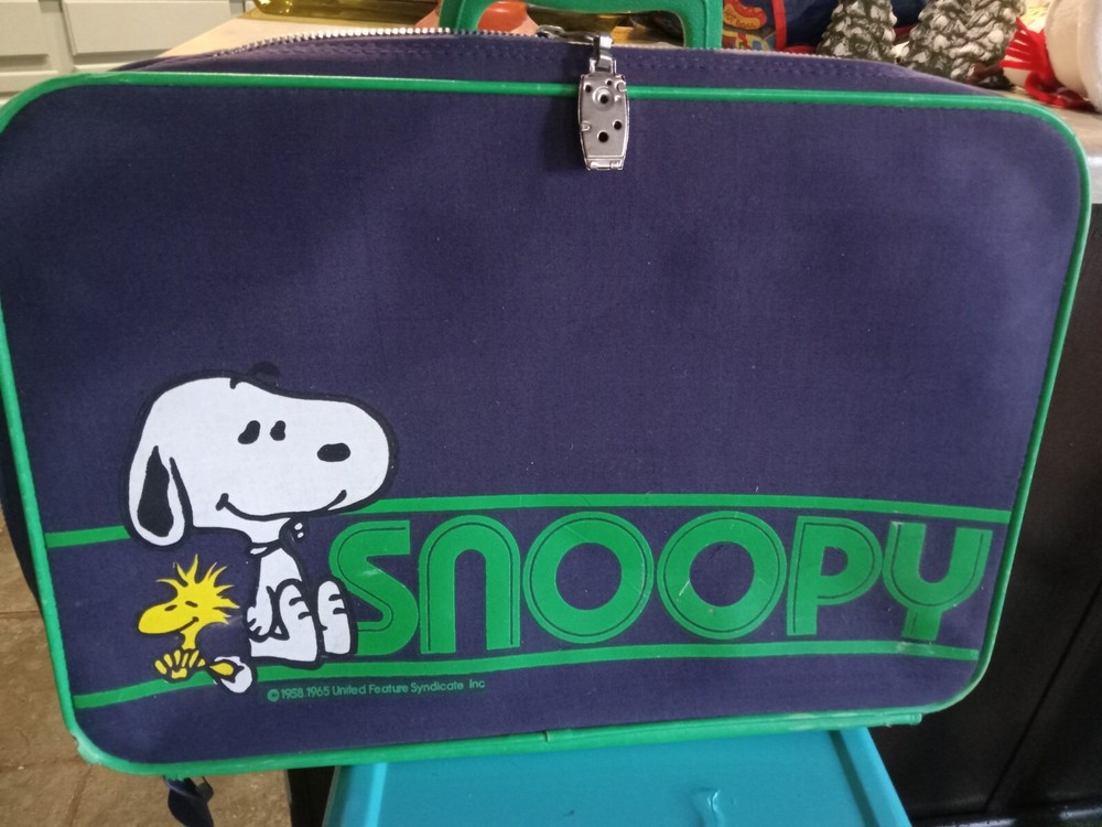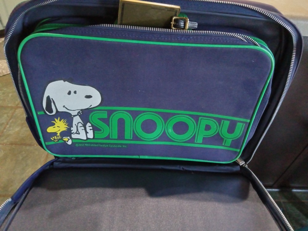 This vintage pair of Aviva luggage bags features Snoopy and Woodstock from the beloved Peanuts franchise. Made from 100% cotton canvas, these bags are perfect for any Peanuts fan or collector. The colorful multicolor design and intricate details make these bags a must-have for any animation art and merchandise collector. The bags are suitable for any occasion and are perfect for carrying your everyday essentials. With a length of 17 inches and a height of 4 inches, these tote bags are spacious enough to carry all your items. The bags were manufactured in 1980 and come in a set of 2. Get your hands on these rare Snoopy and Woodstock luggage bags today! 17x11, and 15x10 approximately. Both zippers work fine. No key.