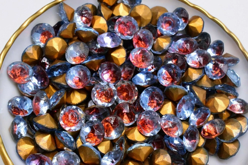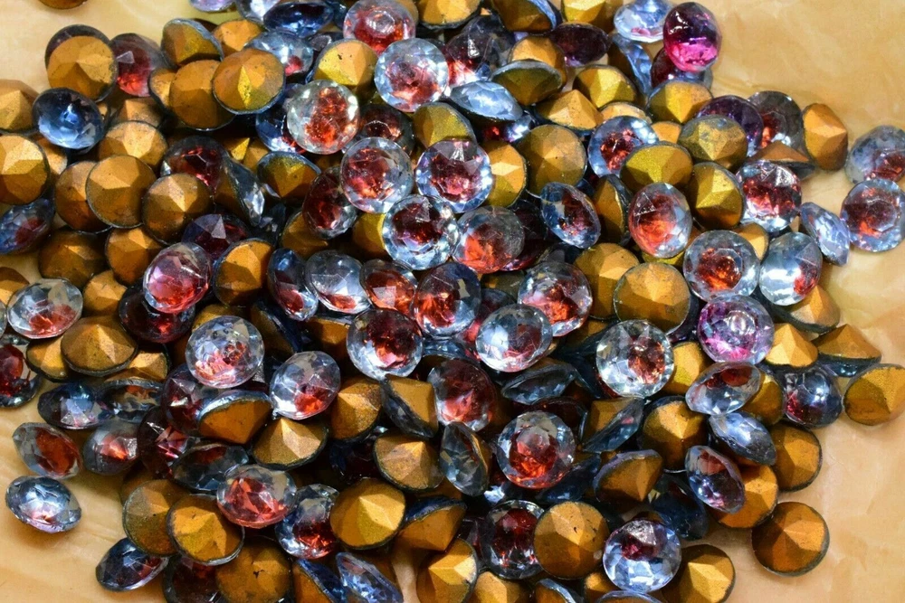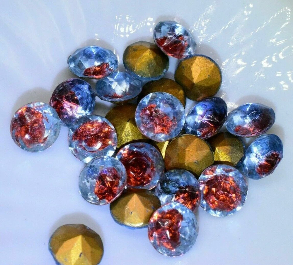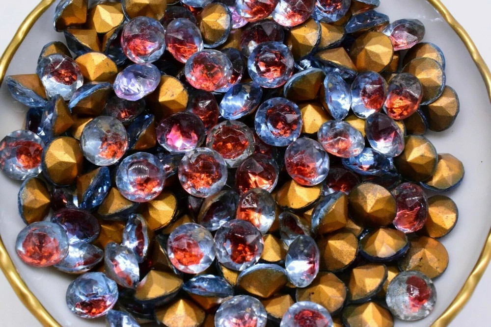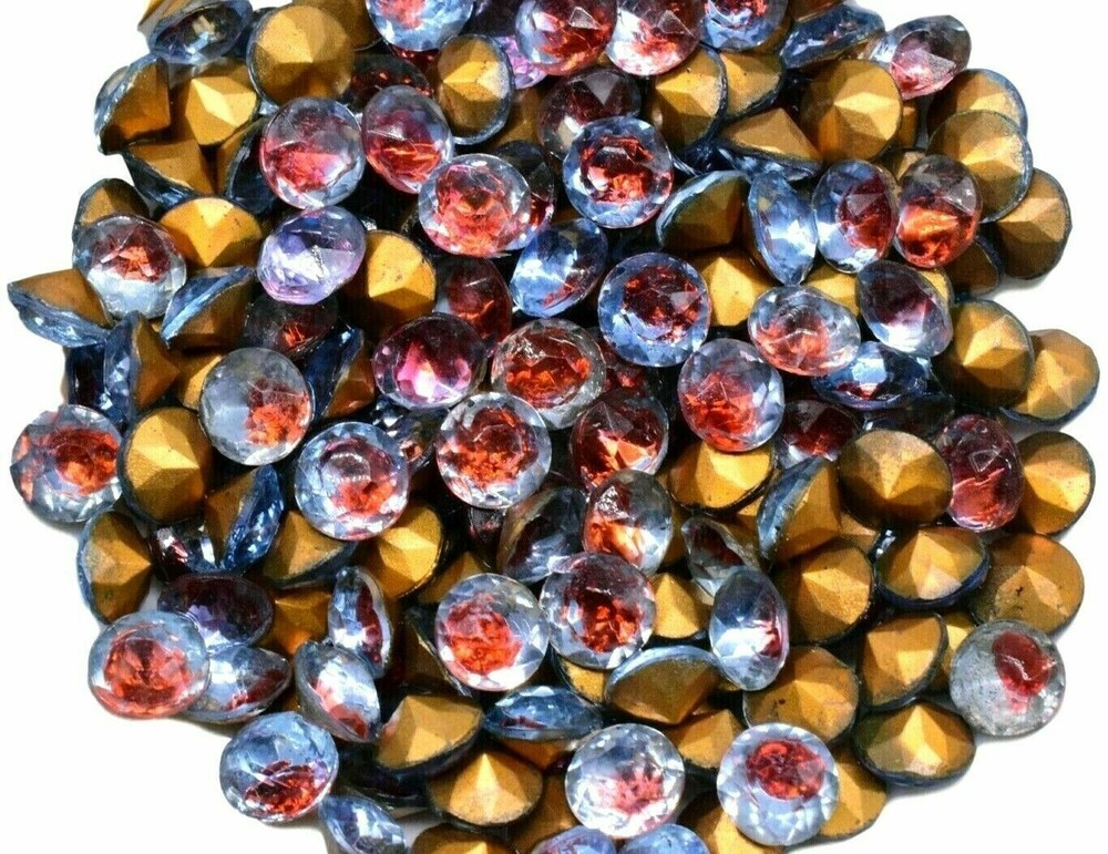 Vintage SS48/11mm Pink Blue Pointed Back Round Lace Glass Beads