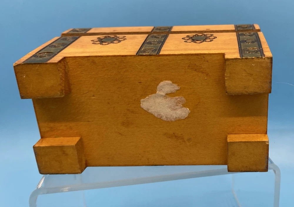 $ 13.14VTG Boho Handmade Acacia Wood Trinket Box with Brass Inlay 7" Lidded Storage