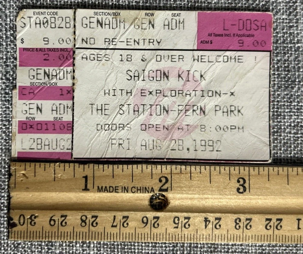 Vintage Saigon Kick With Exploration-X Concert Ticket Stub The Station 8/28/92 The Lizard Tour Pre-Owned - Please see Pictures for Details