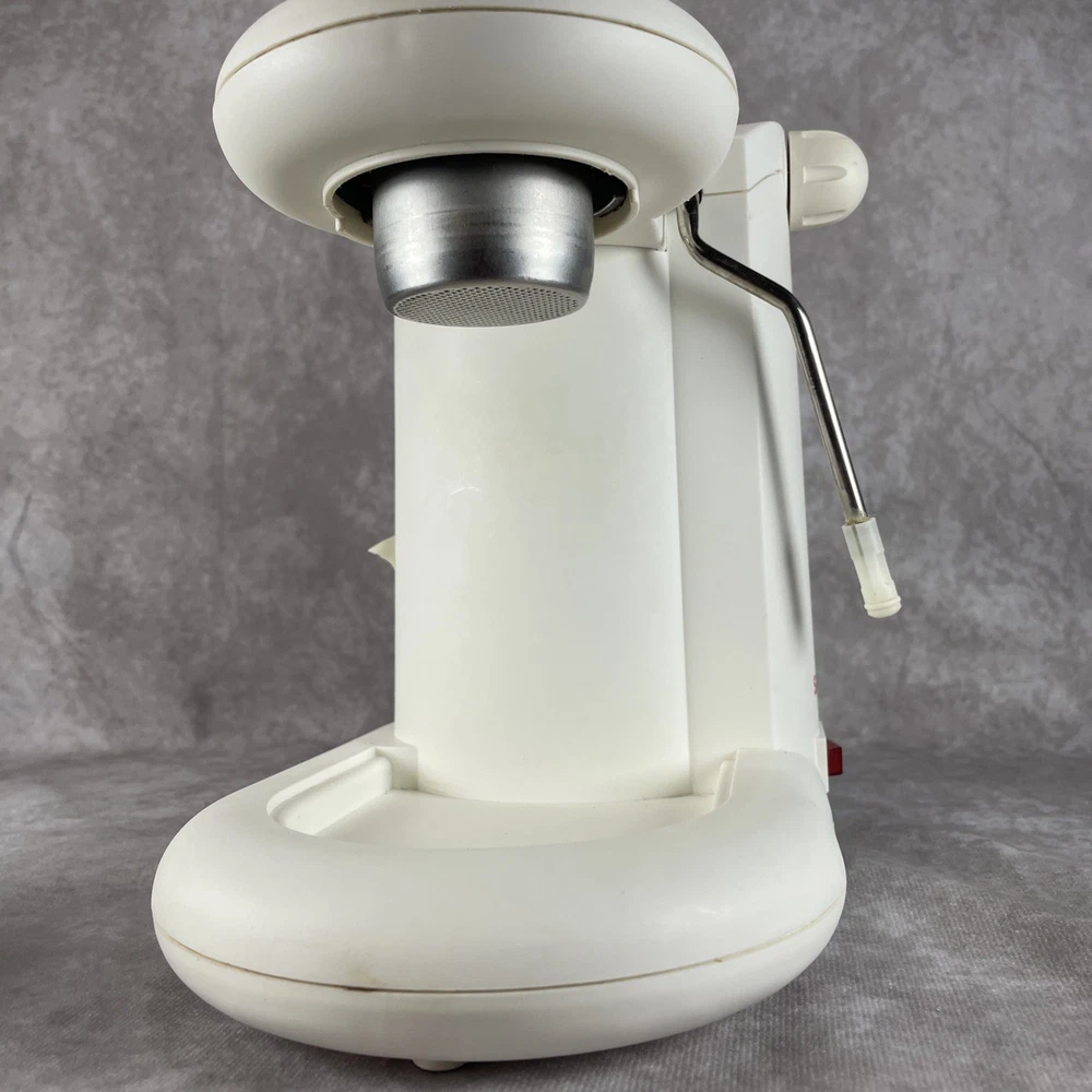 This espresso cappuccino maker is a fantastic vintage find! It brews rich, smooth coffee just like a café, and the compact white design looks charming on any counter. Despite its age, it works perfectly—great pressure, heats up fast, and makes creamy cappuccinos effortlessly. A must-have for coffee lovers who appreciate retro appliances that deliver quality. Highly recommend!