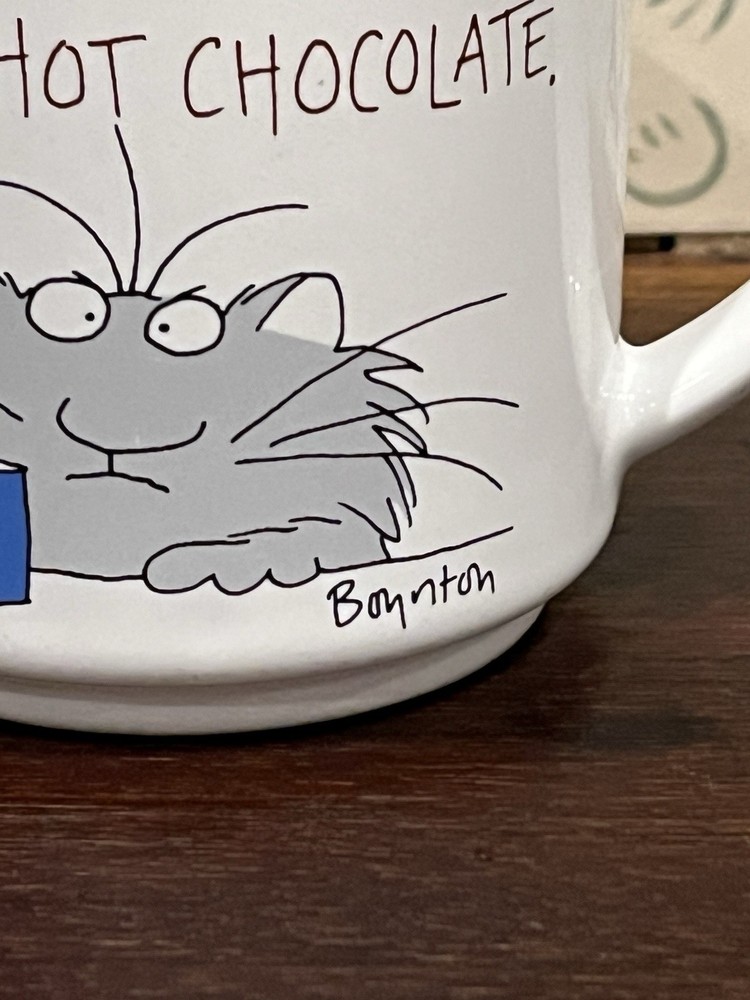 This vintage Sandra Boynton cat mug with the playful design "Keep Your Paws Off My Hot Chocolate" is a collectible piece perfect for fans of cartoons, comedy, and animal-themed decor. Ideal for all occasions and with a capacity of 12 oz, this medium-sized mug is dishwasher safe and features a handle for easy gripping. Made in the 1980s, this mug captures the humor and whimsy of Sandra Boynton's unique style from that era. Perfect for teens and unisex adults alike, this mug is a charming addition to any kitchen or home collection.