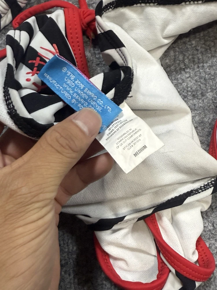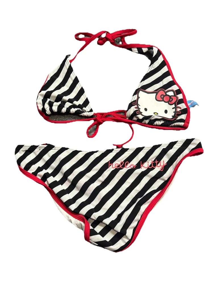 HomeVintage Sanrio 2006 Hello Kitty Bikini Swim Suit Black & White Stripe Size M Set