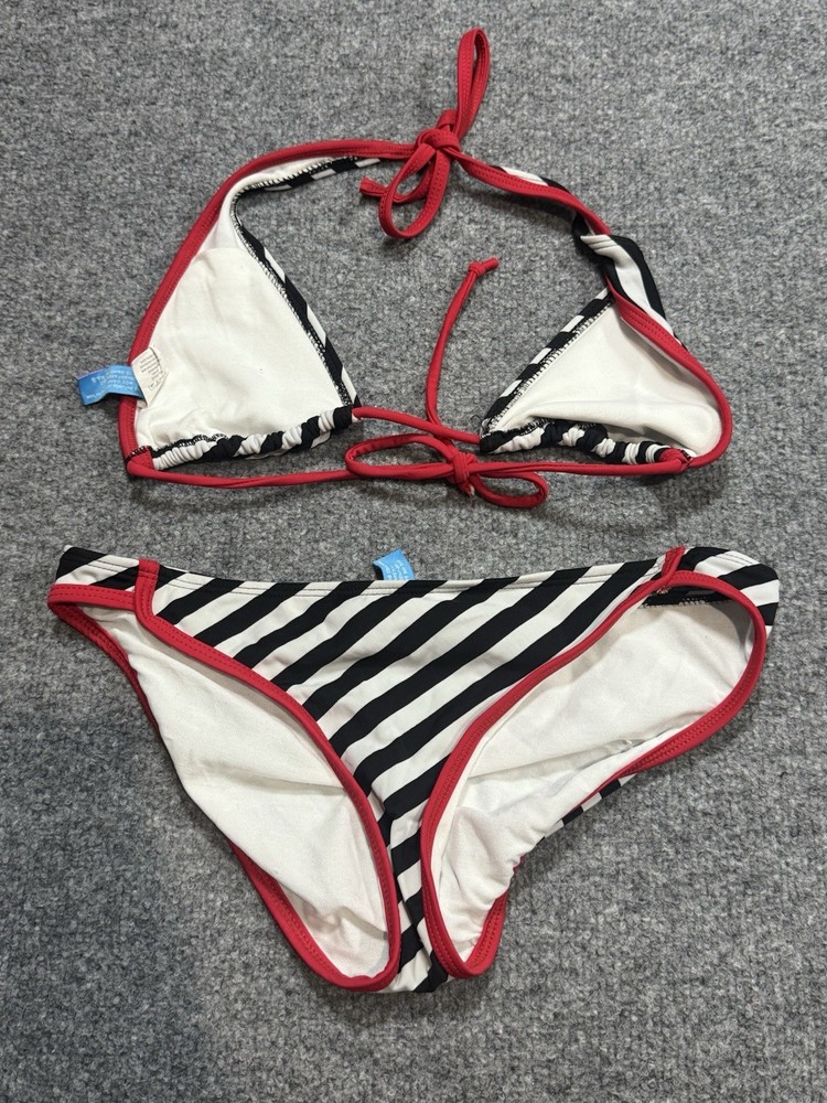 Vintage Sanrio 2006 Hello Kitty Bikini Swim Suit Black & White Stripe Size M Set