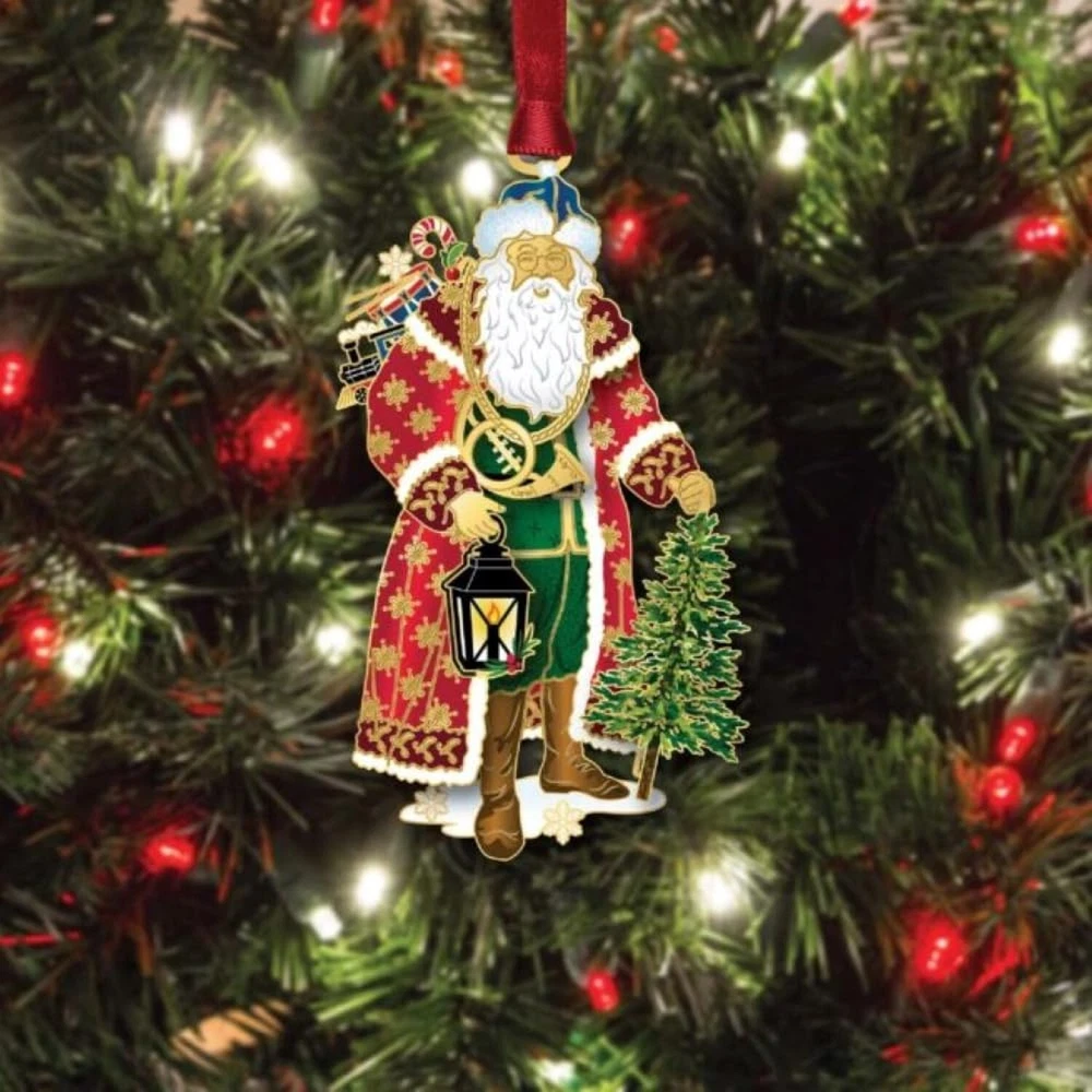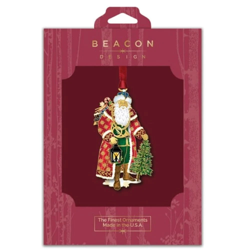 Vintage Santa Christmas Ornaments - Santa Claus Hanging Tree Decorations, 100% Brass Xmas Ornament Decor, Shatterproof Christmas or Home Decorations, Made in USA Product Details Color: Vintage Santa Brand: Beacon Design UPC: 634228664708 EAN: 0634228664708 MPN: Does not apply Package Dimensions: 7 x 5 x 0.6 inches Item Weight: 3.2 ounces Manufacturer: Beacon Design Date First Available: August 7, 2024 Charming Vintage Santa Design - This Vintage Santa ornament beautifully captures Santa Claus on his cheerful journey, adorned in classic red and green clothes with golden accents. Holding a lantern and presents, Santa stands next to a small Christmas tree, adding a whimsical touch to any holiday decor and a nostalgic charm to your Christmas tree. Superior Craftsmanship - Handmade in the USA, this Christmas holiday ornament showcases the highest quality craftsmanship. The solid brass construction, enhanced with 24K gold plating and enamel accents, ensures lasting beauty and durability. Each piece is a testament to Beacon Designs commitment to excellence, making it to your ornament collection. Perfect Gift - Beautifully gift boxed, the charming Christmas ornament is ready to be presented to your loved ones. Its design and high-quality finish make it an ideal gift for Christmas enthusiasts, ornament collectors, or anyone who appreciates handcrafted decorations. Celebrate special occasions with this delightful and thoughtful present. Holiday Charm - Add a holiday touch to your festive decorations with these Christmas ornaments. Their intricate details and shimmering gold finish catch the light beautifully, making it a stunning focal point on any tree decoration. Whether displayed alone or as part of a themed collection, it brings a sense of wonder and joy to your celebrations. Collectors Item - This 3.7" x 2.11" x 0.25" ornament is more than just a decoration; its a keepsake that will be treasured for years. The high-quality and exquisite design make it a valuable addition to any collection of ornaments. Perfect for marking special memories or traditions, its a piece that will be admired and enjoyed for generations. Introducing the charming Vintage Santa Ornament by Beacon Design, a timeless addition to your Christmas ornaments collection. This beautifully crafted piece features a classic depiction of Santa Claus on his joyful journey to deliver presents. Adorned with golden designs on his red and green attire, Santa is seen holding a lantern and carrying presents on his back, while a small Christmas tree stands at his feet. Measuring 3.7 x 2.11 x 0.25 inches, this ornament is the perfect size to dangle from your Christmas tree or anywhere else you wish to add a touch of festive cheer. Handmade in the USA, this ornament is crafted from solid brass and plated in 24K gold, with intricate enamel accents that bring Santa to life. Each detail, from the etched lines and dots to the digitally printed glossy layer, ensures that this keepsake glistens and glimmers under the holiday lights, making it a standout piece on your tree. Packaged in a beautifully gift-boxed presentation, it makes for a thoughtful and fun gift for loved ones, or a delightful addition to your own collection of Christmas ornaments. Whether you're looking for family keepsake ornaments, this Vintage Santa Ornament fits perfectly into any festive theme. Its high-quality craftsmanship and enchanting design make it a must-have for those who appreciate the finer details of holiday decor. Add this fanciful ornament to your Christmas tree decorations and let Santa's cheerful presence brighten your holiday season.