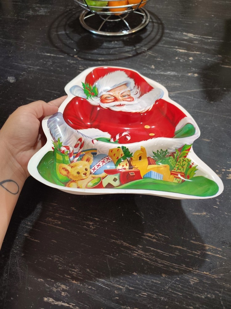 Material: Plastic Department: Adults Type: Serving Tray Character: Santa Style: Art Deco Theme: Santa Claus Model: Candy Cookies Tray Decoration Room: Any Room Brand: Unbranded gtin13: Does not apply MPN: Na UPC: Does not apply Country/Region of Manufacture: Unknown Item Length: 3 in Item Width: 13 in Energy Star: Na Color: Multicolor Occasion: Christmas Character Family: Santa