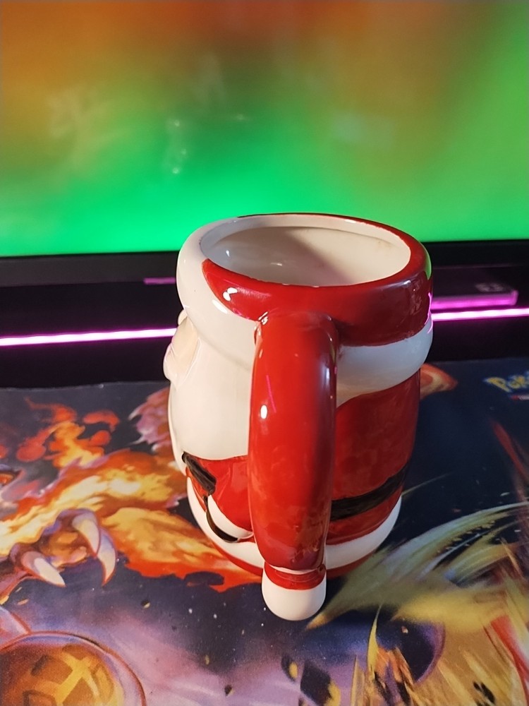 vintage Santa Claus hot cocoa mug in really great condition has slight chips around the rim near the handle but it is a must-have for anybody that loves Santa hot cocoa collectible dishware or just Christmas items in general very usable still good and a lovable piece