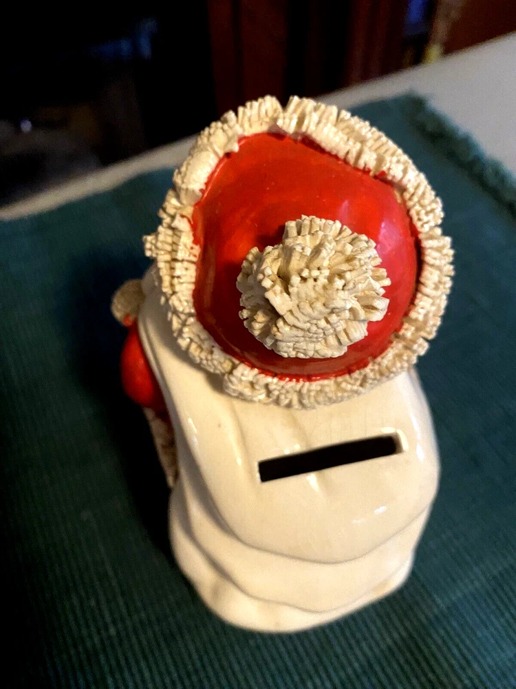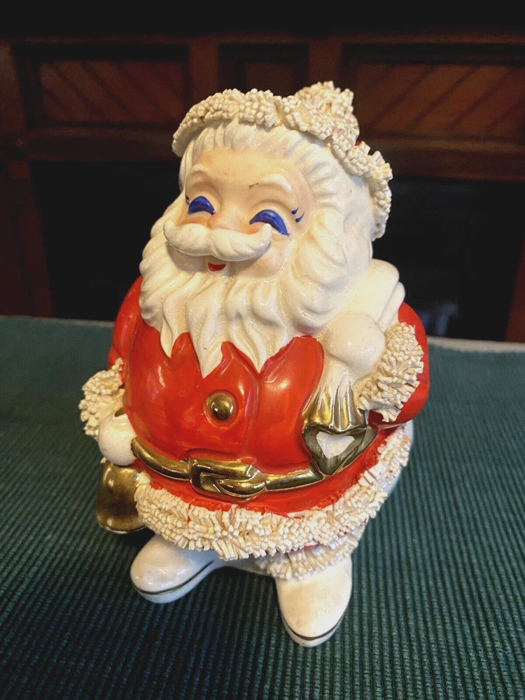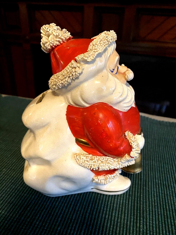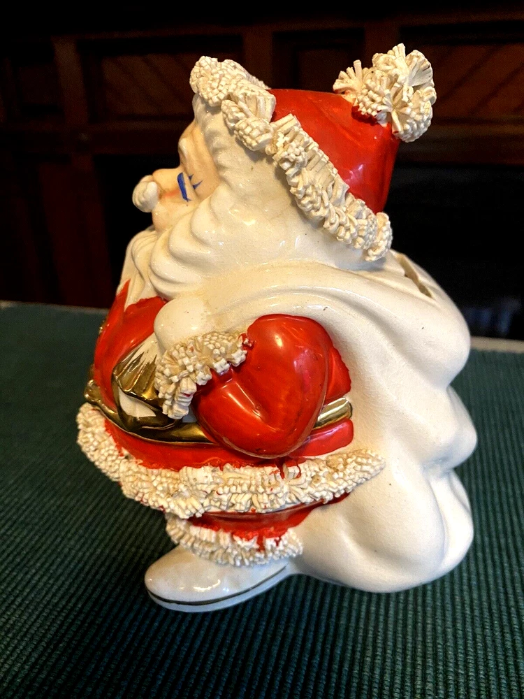 Vintage Santa Claus Coin Bank Spaghetti Trim Japan Blue Eyes, Gold Trim