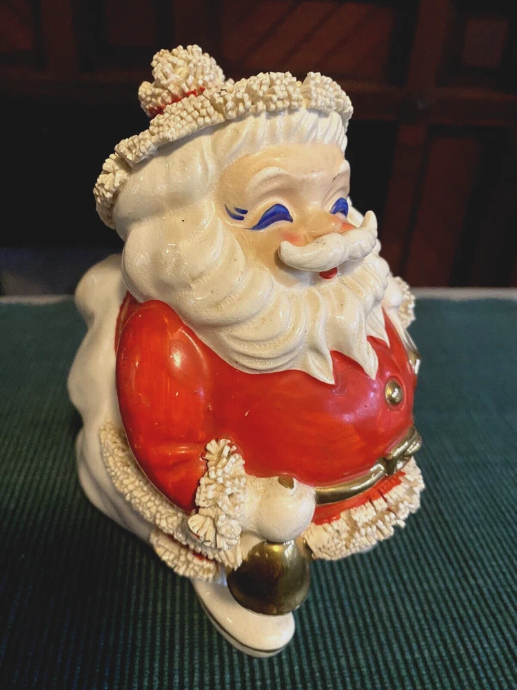 HomeVintage Santa Claus Coin Bank Spaghetti Trim Japan Blue Eyes, Gold Trim