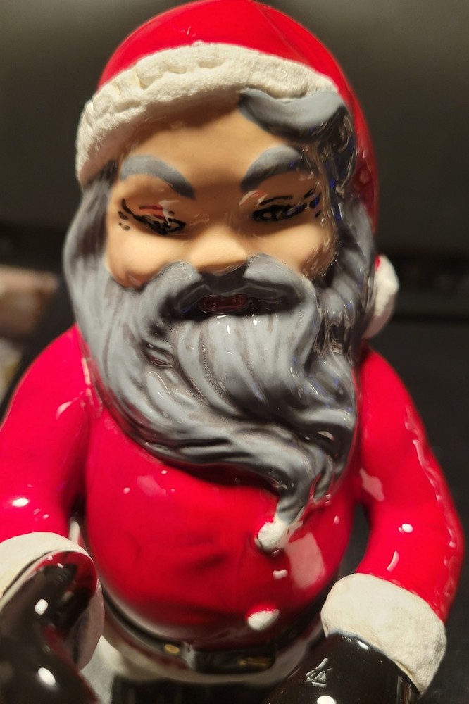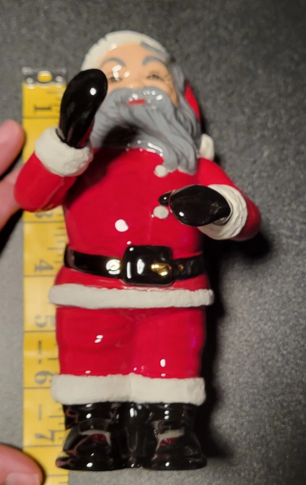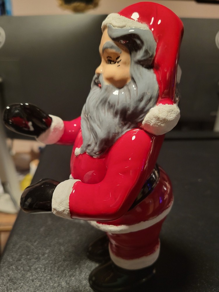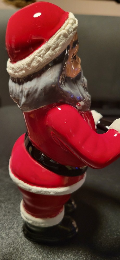 This Vintage Santa Figurine is a charming collectible piece perfect for Christmas decor. Hand-painted in a multicolor finish, this figurine features Santa Claus holding a Christmas tree. Produced during the late 20th century, this original piece weighs 2 lbs and is a beautiful addition to any holiday and seasonal display. With its nostalgic theme and seasonal appeal, this Santa figurine is sure to bring a touch of vintage charm to any home during the holiday season.