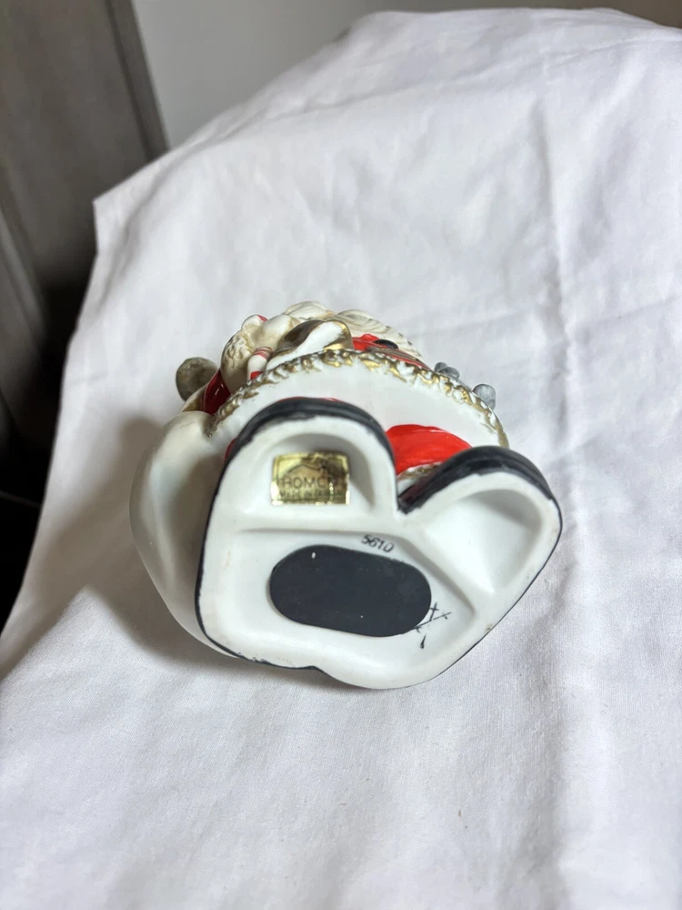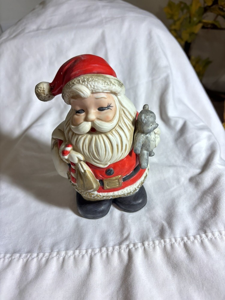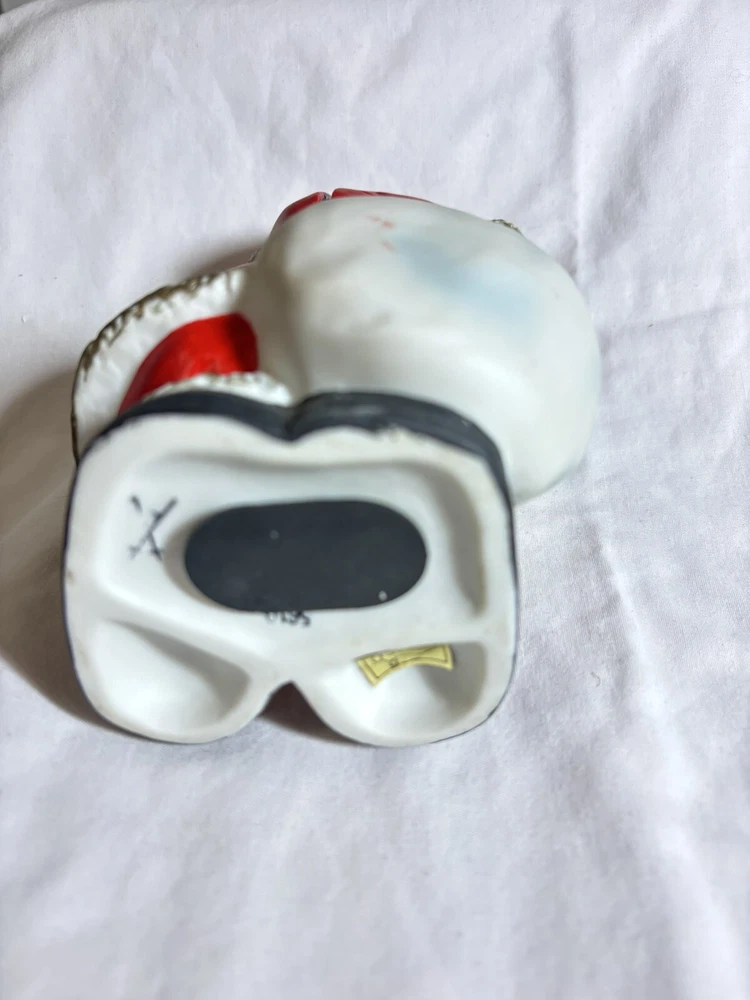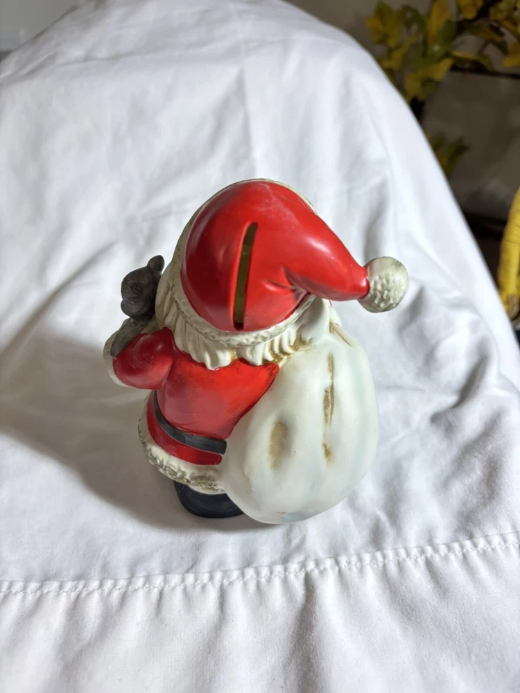 This vintage Santa porcelain bank is a beautiful addition to any holiday collectibles. The hand-painted design is exquisite and the attention to detail is impressive. Made in Japan in 1960 by Ecomco, this bank is a true gem for collectors. New with original package, but no box. Marking on bottom Japanese cross sword and sticker intact, original stopper With a bright red color and a unit quantity of 1, this bank is perfect for Christmas decorations or as a unique gift. The bank is also handmade, adding a touch of personalization to an already special piece. Don't miss out on this rare find from the 1960s. Returns accepted within 30 days; buyer pays return shipping