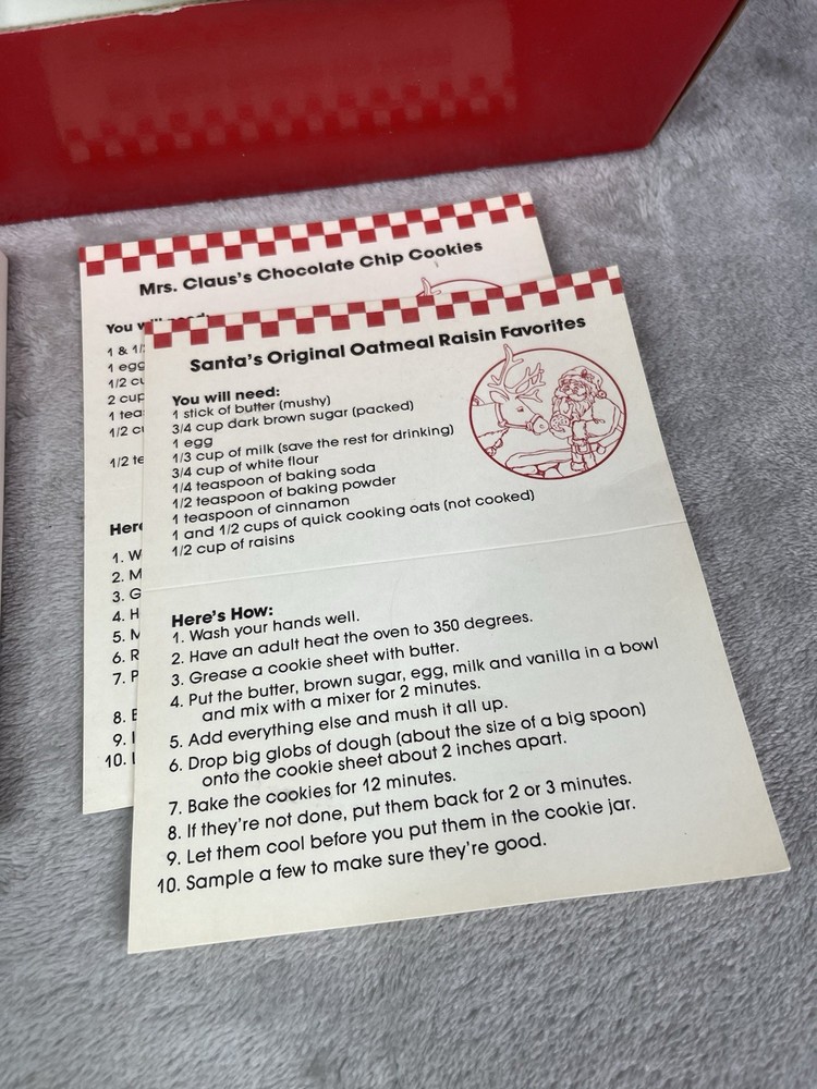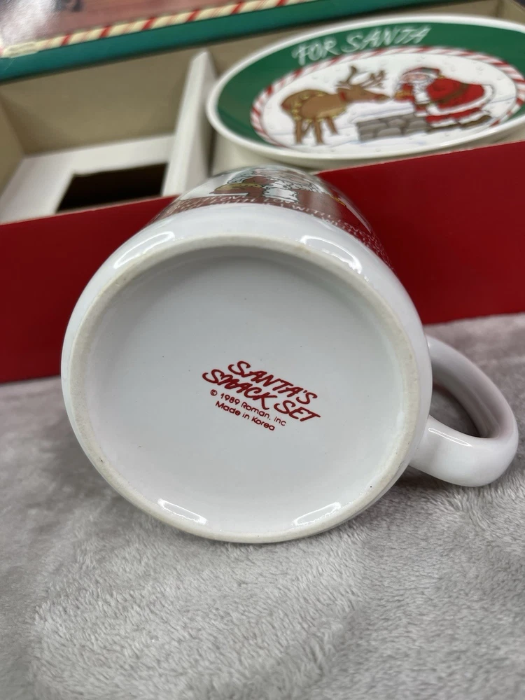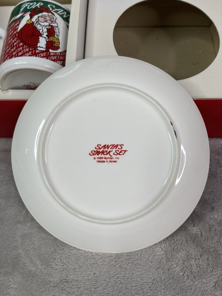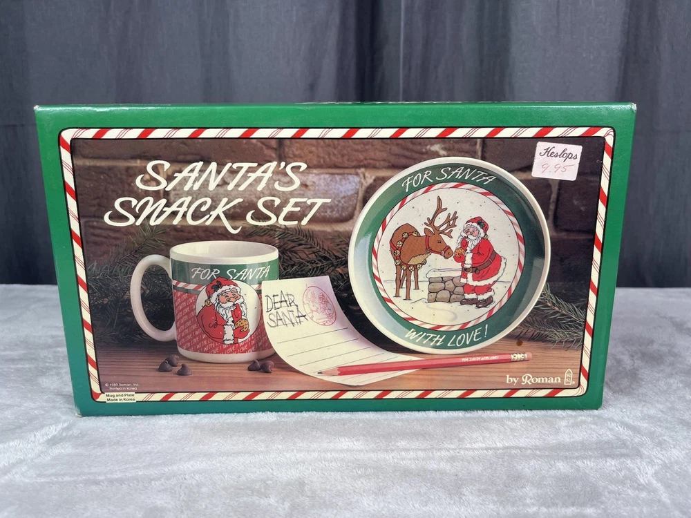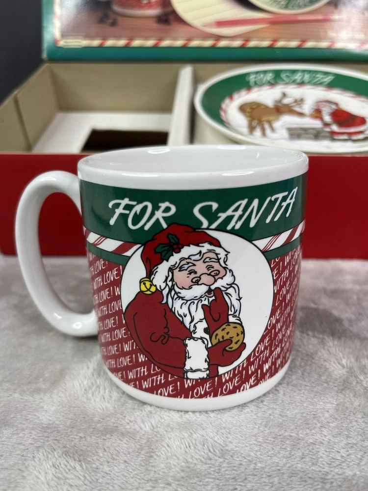 Missing storybook and pencil. Great condition!Comes with plate, mug, recipes, and Santa letterheads. Small stain inside cup. Has some cracking on plate.