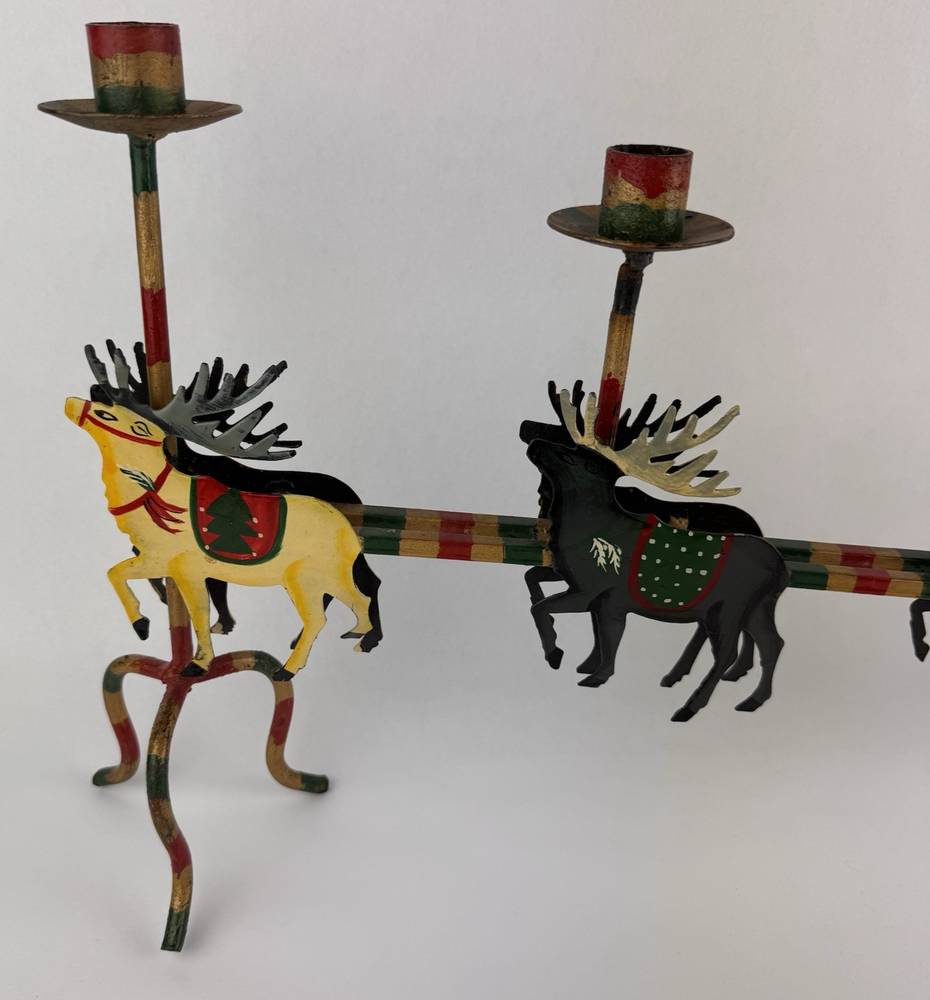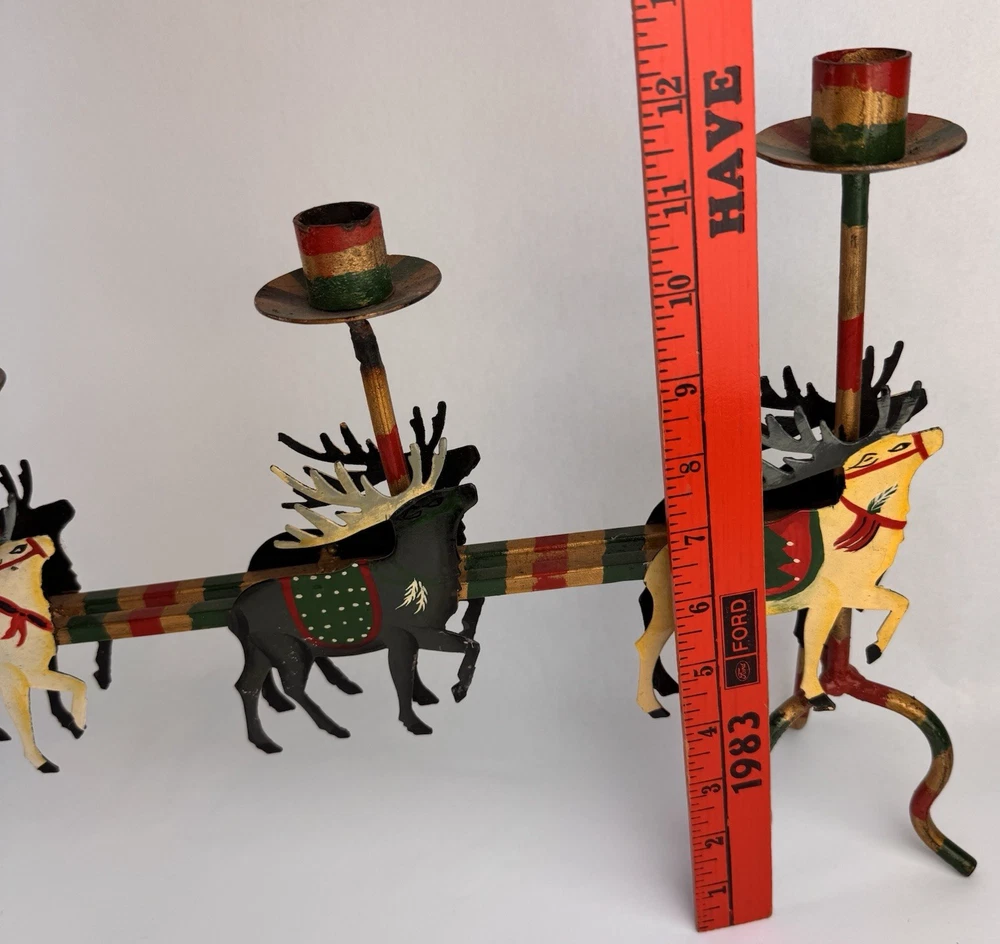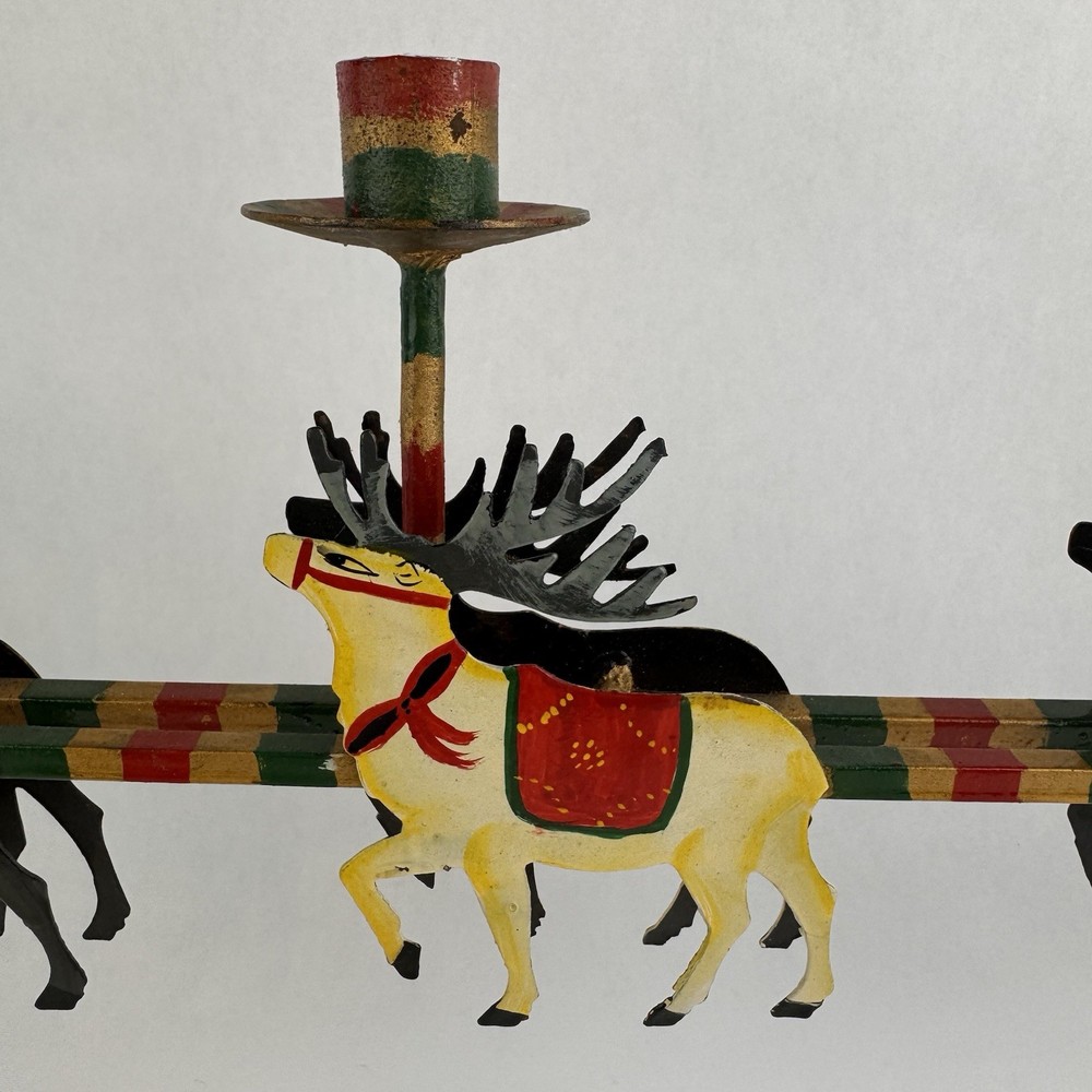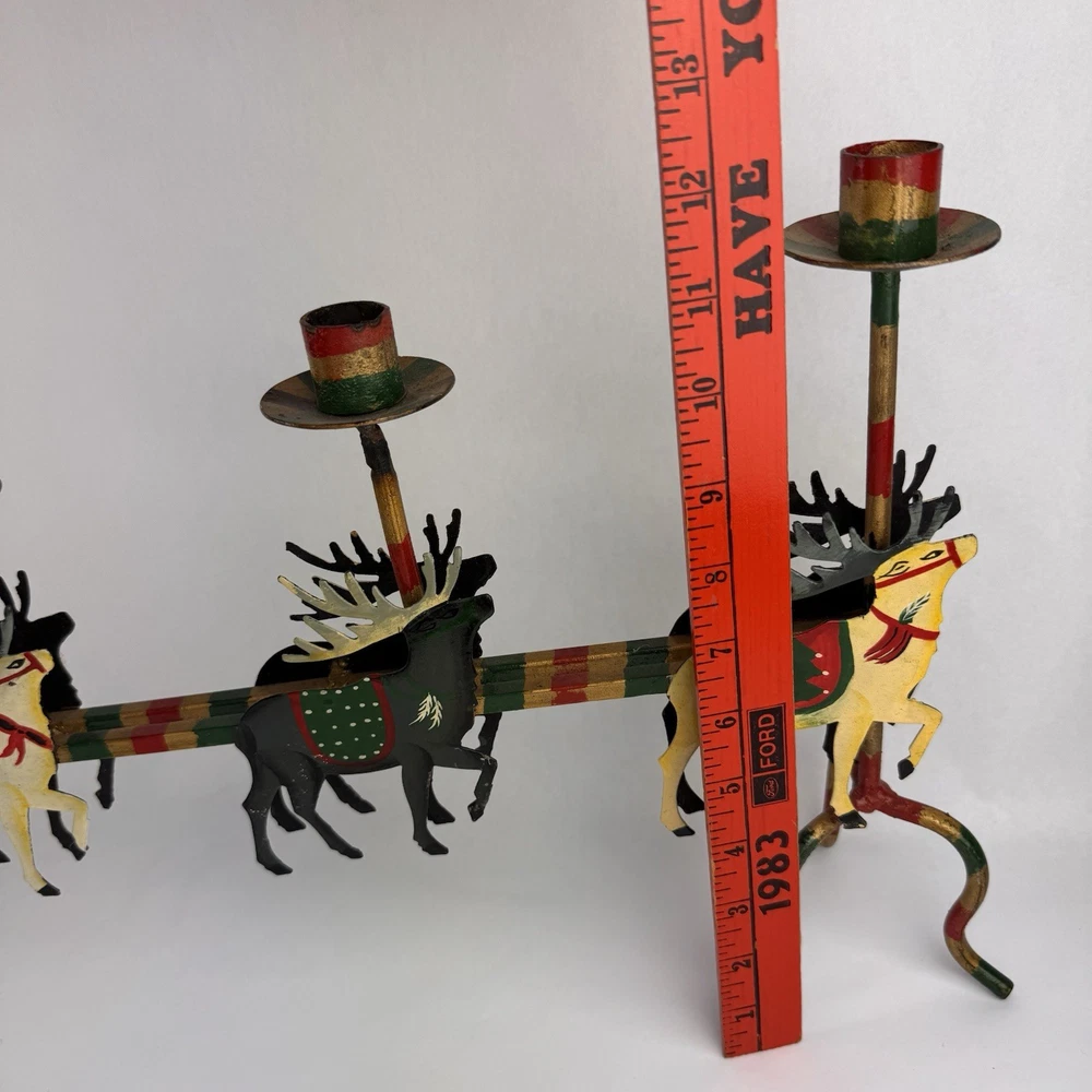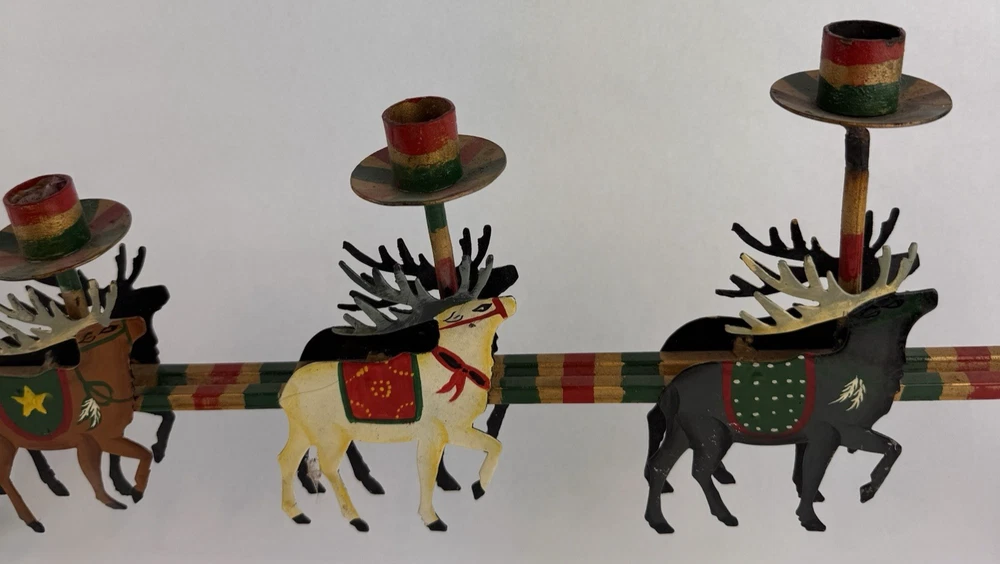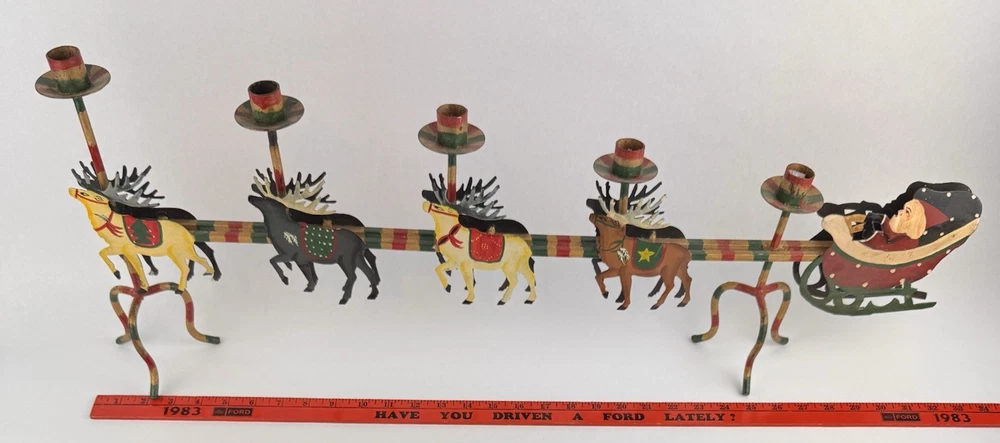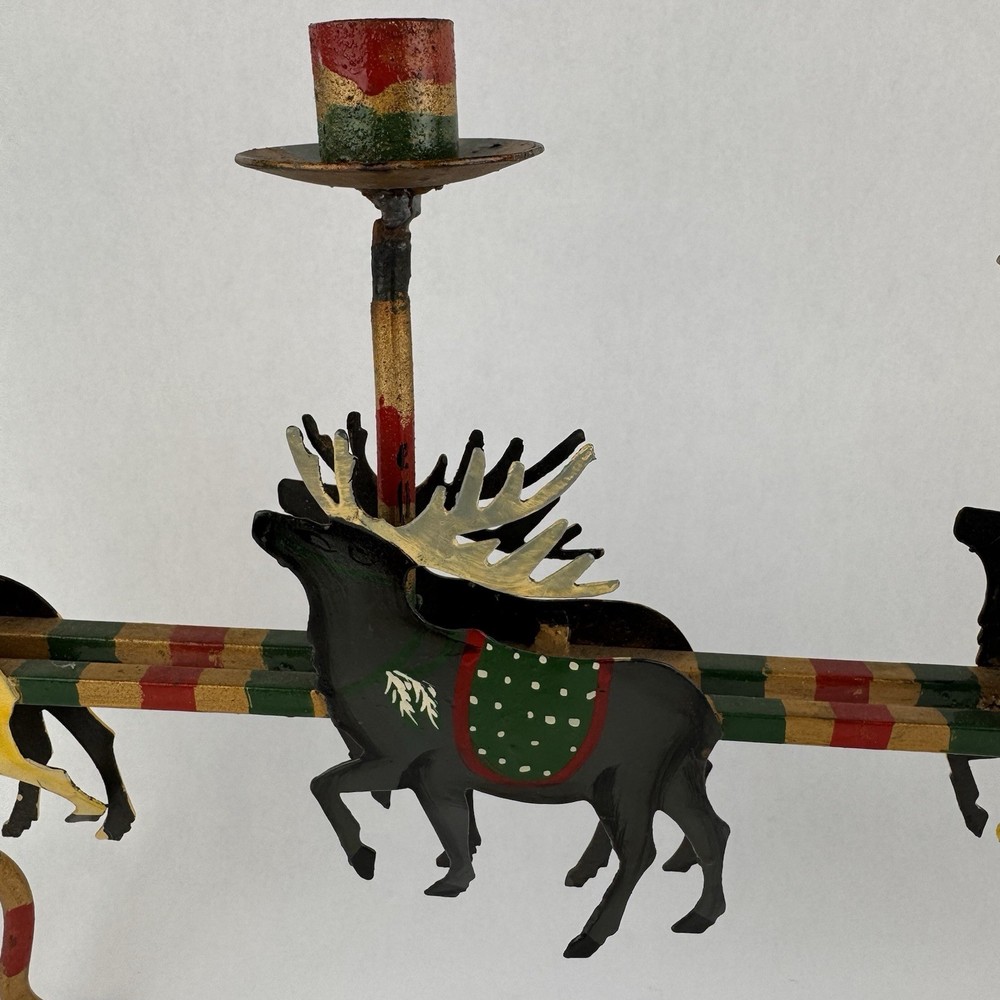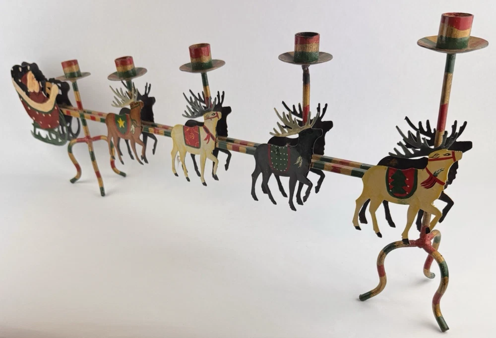 Vintage Santa's Sleigh Candle Holder Christmas Decor Metal Folk Art Measures approx. 32" long. Colorful.