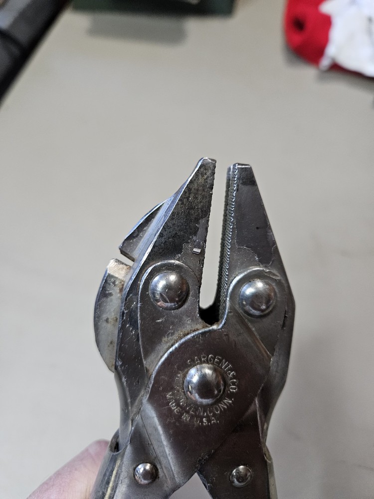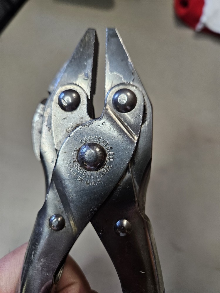 UPC:Does Not ApplyNumber of Pieces:1Seller Notes:“Used with wear Chrome Coming off”Color:SilverSize:8 ingtin13:Does Not ApplyItem Length:8""Type:Parallel Jaw PliersCountry/Region of Manufacture:United StatesItem Width:3Manufacturer Warranty:NoneBrand:SARGENTItem Weight:1 lbFeatures:Side cutterMaterial:Metal
