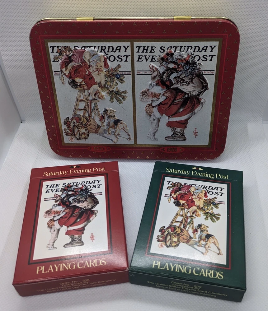 Both decks have been open but show very little signs of use. Comes in nice embossed metal tin.