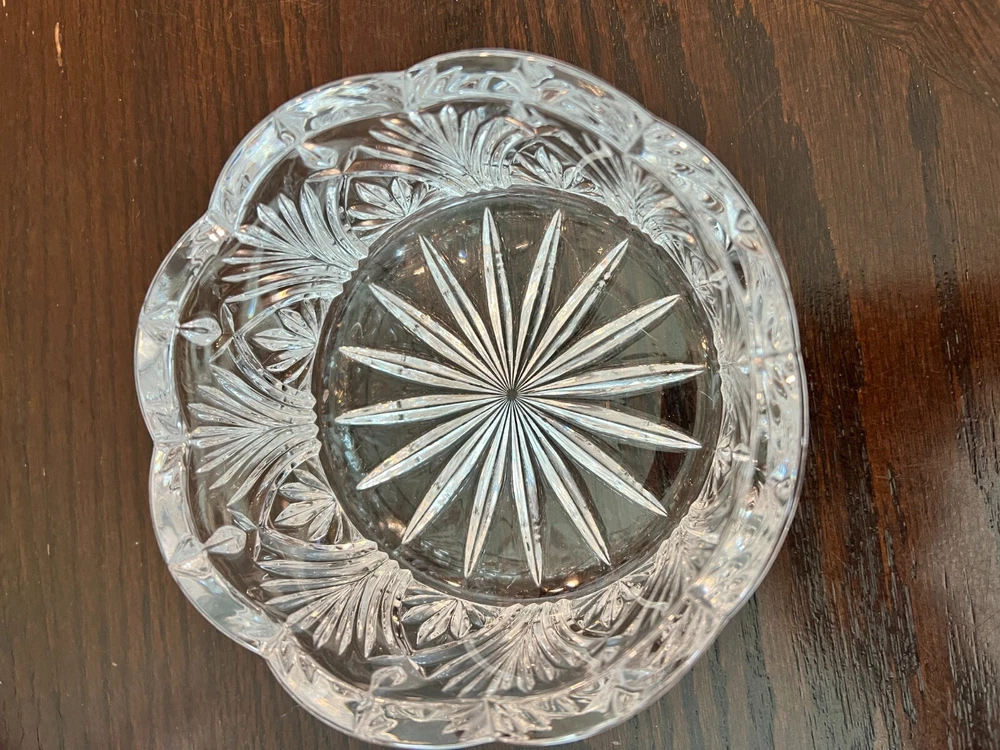 Vintage Scalloped Rim Glass Candy Dish with Starburst Leaf Design