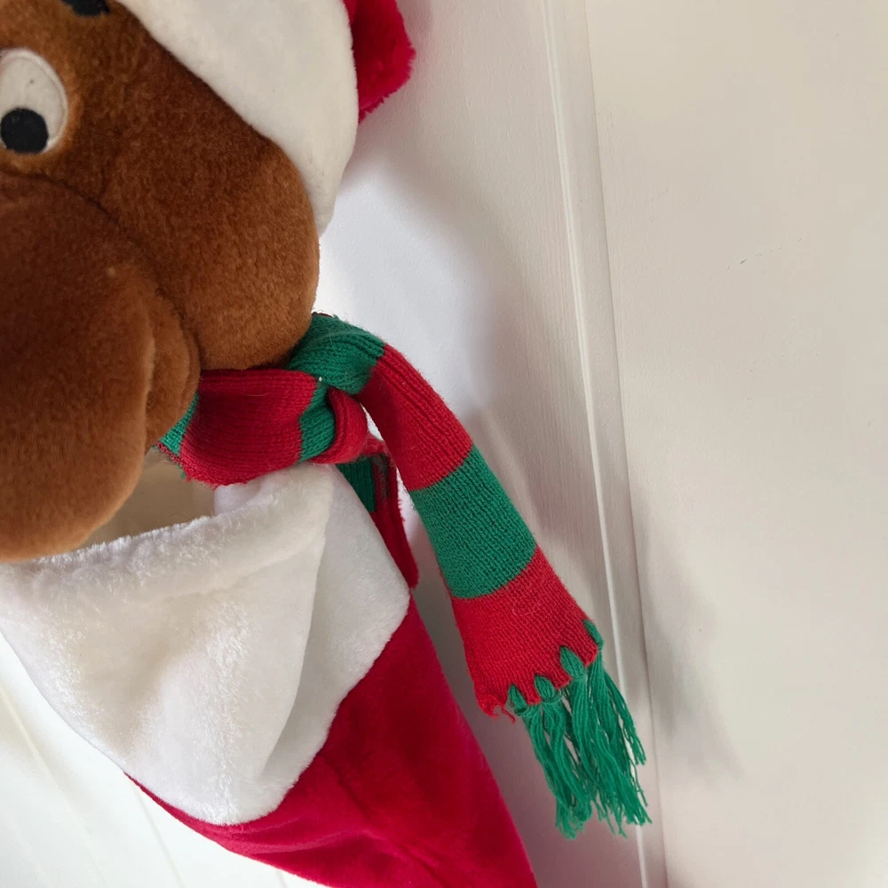 This vintage Scooby Doo Warner Bros Hanging Christmas Stocking from 1997 features the beloved character Scooby Doo from the Hanna Barbera franchise. Made of polyester in a medium size, the red stocking showcases a classic cartoon design perfect for Christmas. This original Christmas stocking is a collectible item for fans of Scooby-Doo and vintage holiday decor, with its vintage appeal and hanging feature adding to its charm.