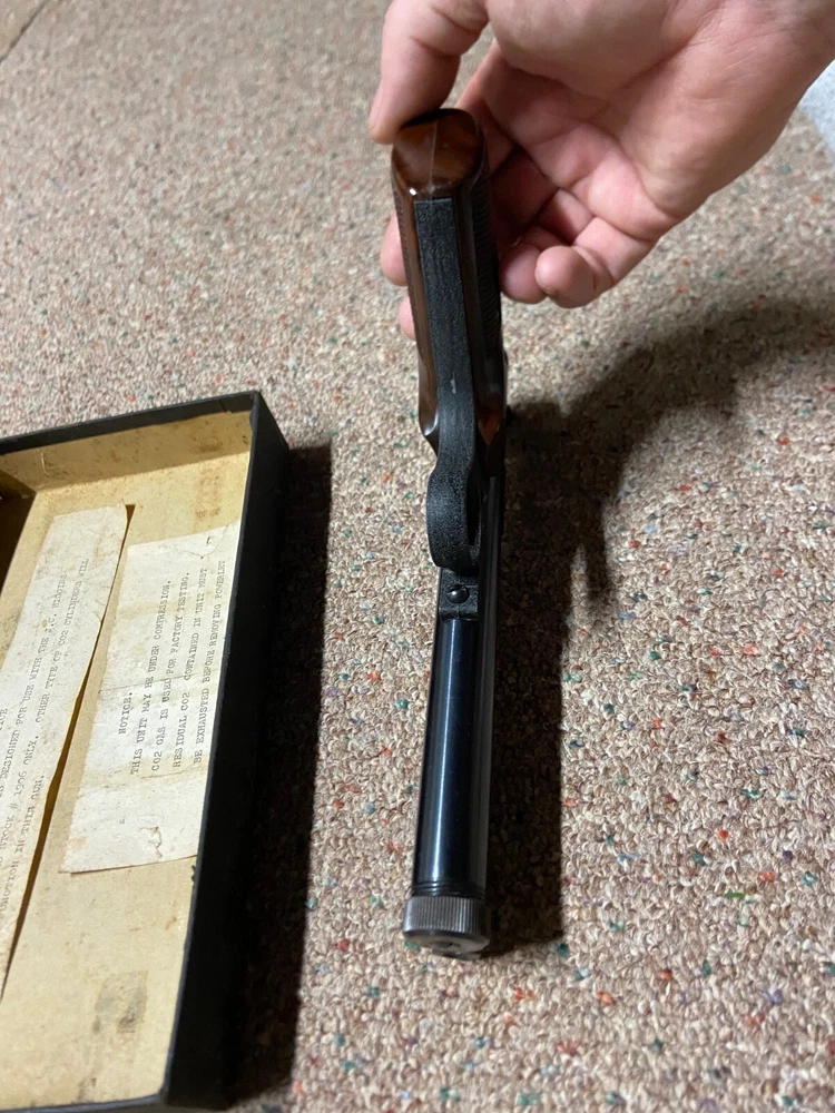 Could not list as new because unsure, but anib. Resealed and tested. Shoots to spec at 400 fps-ish. Rare find! Don’t let it get away! Know your state laws and good luck! Ship to lower 48. Back plug has 72 on it. Guessing made in 1972. Part of the requirements for listing in this category state that sellers include the disclaimer below. Please copy and paste the following text into your item description: This listing complies with eBay’s air gun guidelines found here and I will only sell and ship air guns to buyers in jurisdictions where permitted by applicable laws http://pages.ebay.com/help/po