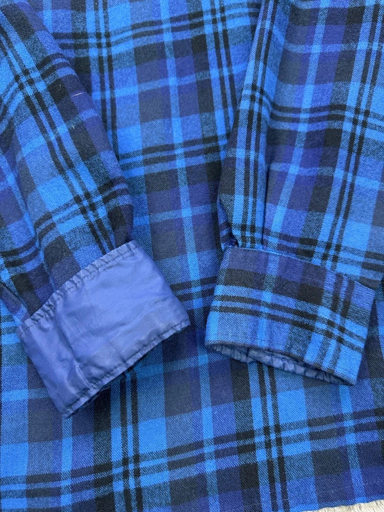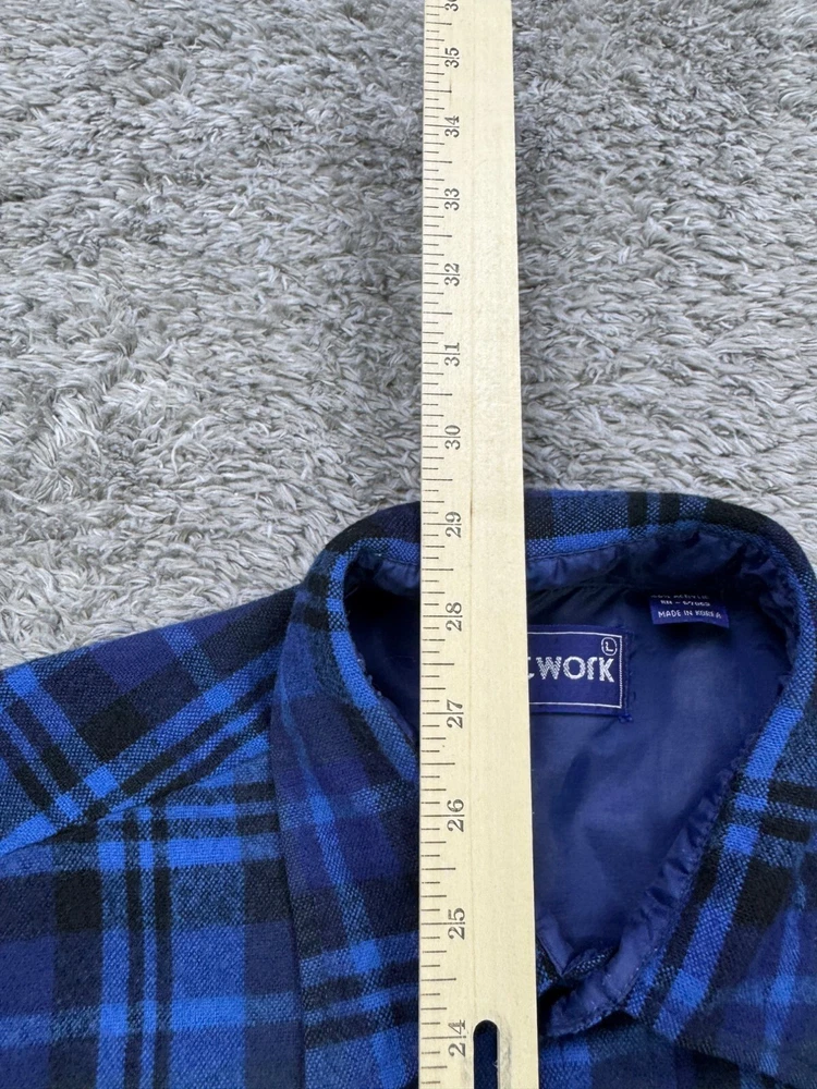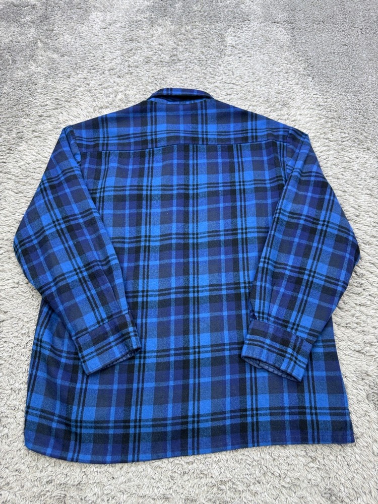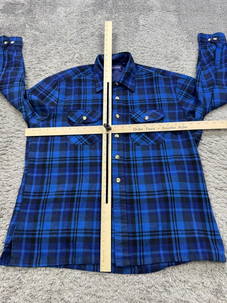 Vintage Sears Blue Plaid Acrylic Western Flannel Shacket for Men Size Large