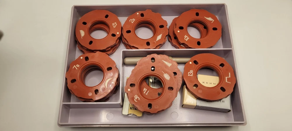 $ 7.9Singer Top Hat Cams Lot 30 Stitch Pattern Discs Case 401 403 500 503 600 603