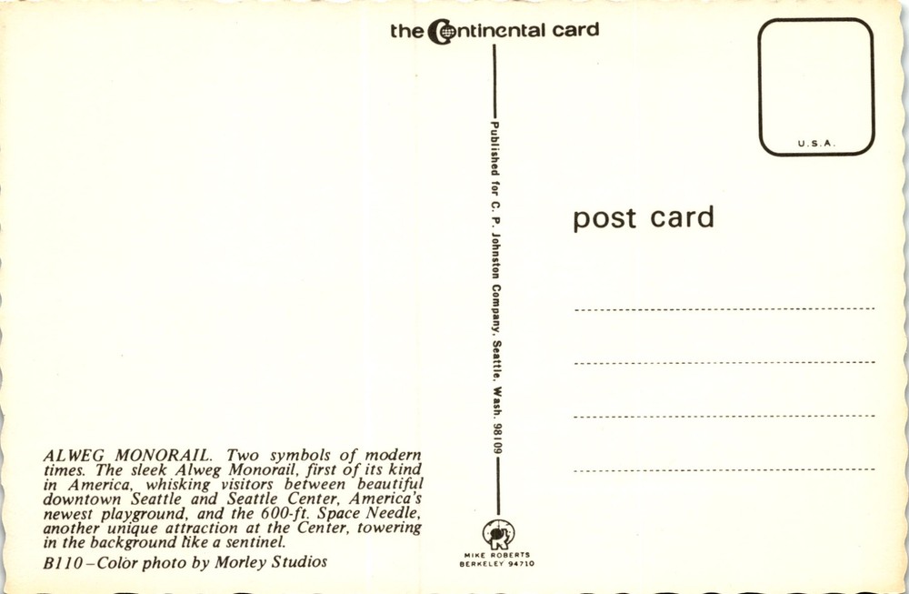 Vintage Seattle Postcard Featuring Space Needle & Monorail by Morley Studios