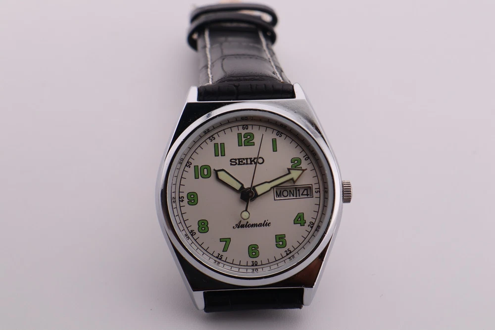 Seiko Men’s Vintage Automatic Watch – Professionally Serviced This Seiko men’s vintage automatic watch has been professionally serviced by an experienced watch technician. As a mechanical timepiece of vintage age, it may gain or lose up to ±5 minutes per 24 hours, which is normal and expected for watches from this era. Each watch is carefully tested on a timegrapher to ensure optimal performance and accuracy. A timeless classic, this Seiko automatic is ideal for collectors and watch enthusiasts alike. Its refined design and reliable construction make it a piece you can enjoy for years to come. Add a piece of horological history to your collection today. How Automatic Watches Work This is a mechanical automatic watch and does not require a battery. Starting the Watch Gently move or shake the watch side-to-side for 10–15 seconds to activate the movement. Daily Operation Normal wrist movement automatically winds the internal mechanism while worn. If the watch is not worn for 8–24 hours, it may stop. Simply repeat the steps above to restart it. About Vintage Timepieces Please note that, as these are vintage and previously owned timepieces: Certain watches may have undergone servicing, restoration, or part replacement at some point by former owners or suppliers. Each watch is individually checked and reviewed before shipment. New Old Stock (NOS) pieces may contain refurbished or non-original components, including dials without serial markings, as original factory parts may no longer be obtainable due to age. Buy with confidence—every order includes a 30-day free return period. Why Buy From Us Free Shipping Free 30-Day Returns Buy with Confidence Order Processing Time We test each watch for 24 hours before shipping. USPS pickups may require an additional 1 to 2 days. Thank you for your patience and understanding. Handling Time Orders are processed and shipped within 3 business days after receiving cleared payment. Shipping Timeframes Domestic (USA): Estimated delivery in 4 to 10 business days International: Estimated delivery in 4 to 24 business days Buyers are responsible for all duties and taxes required by their country. Transit times do not include handling time, weekends, or holidays. Payments Payment is considered cleared once it is received and processed by eBay. Return Policy Returns accepted within 30 days of delivery Items must be unused, unworn, and in original condition Return shipping is covered by the seller Refunds are processed within 2 business days after the return is received Buyers are responsible for any import duties or taxes Feedback Promise We are committed to 100 percent customer satisfaction and take pride in providing outstanding service. Your positive feedback and five-star ratings are greatly appreciated. If you experience any issues, please contact us before leaving negative feedback. We are always here to help and will work quickly and professionally to resolve any concerns.