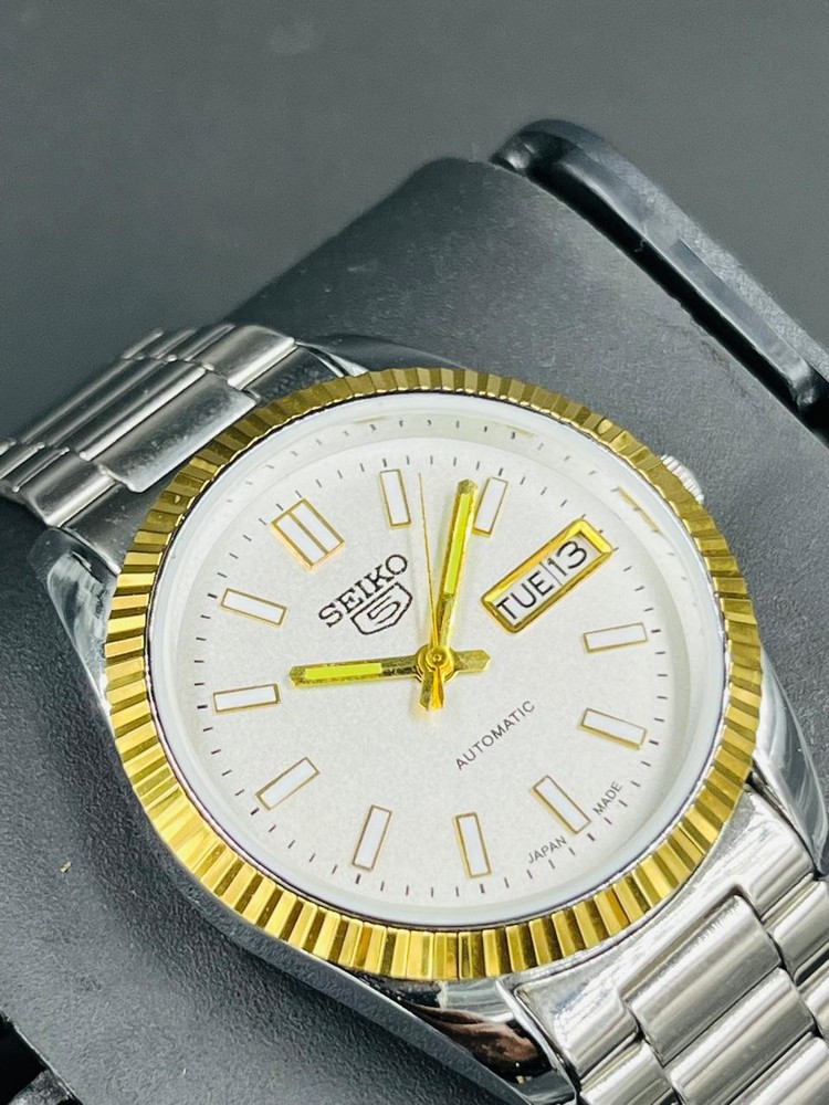 This vintage Seiko watch is stunning—the fluted bezel and sunburst dial add elegance, while the automatic movement keeps it precise. The stainless steel band feels durable yet comfortable, and the day/date feature is super handy. Perfect for dressing up or keeping it casual, it’s a timeless piece that stands out. A fantastic find for any watch lover!