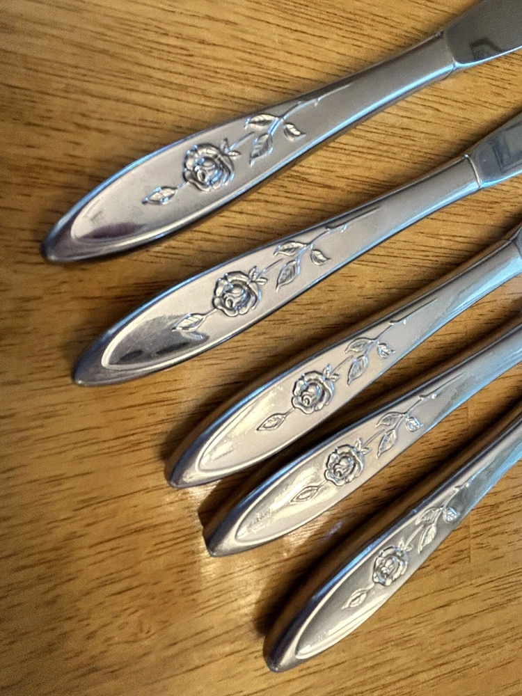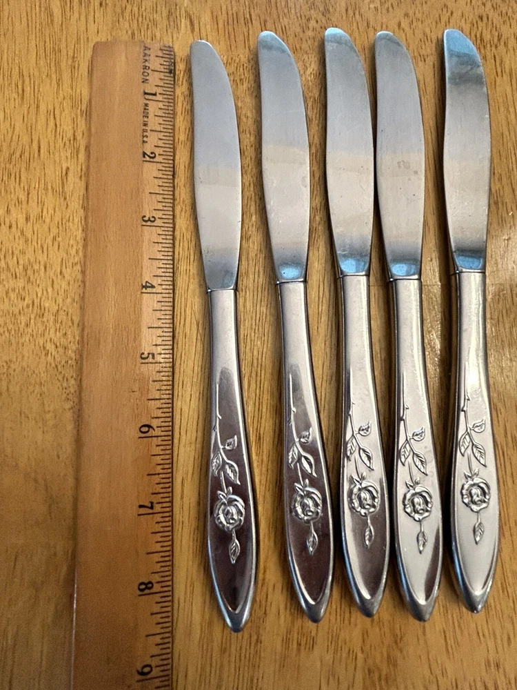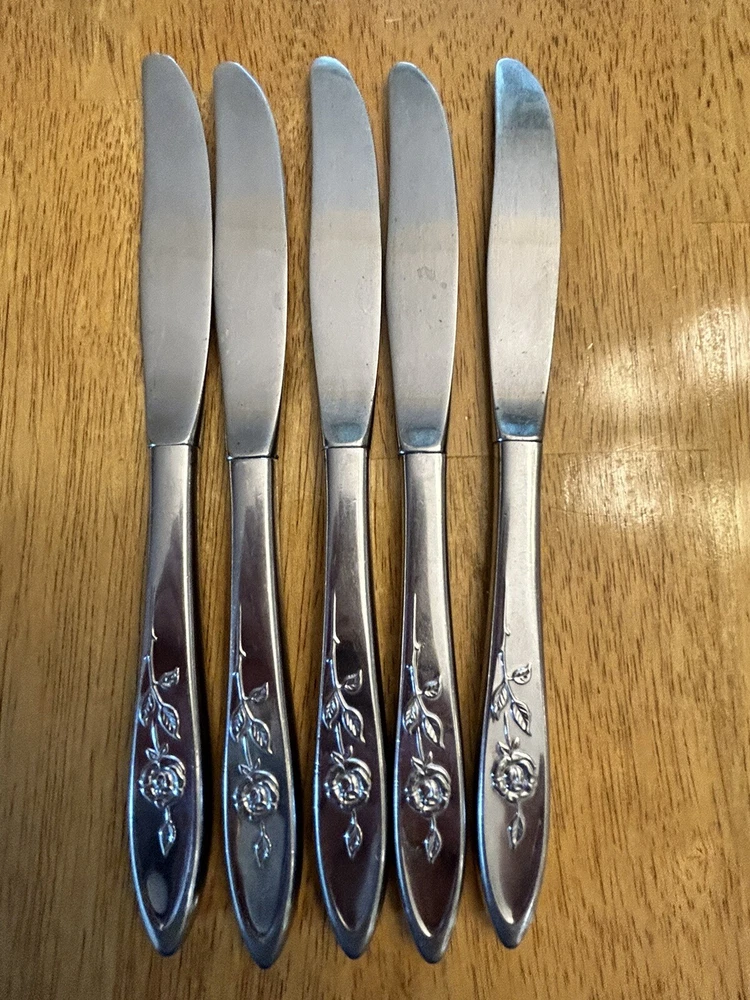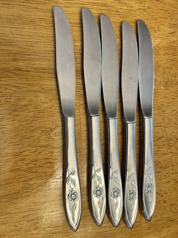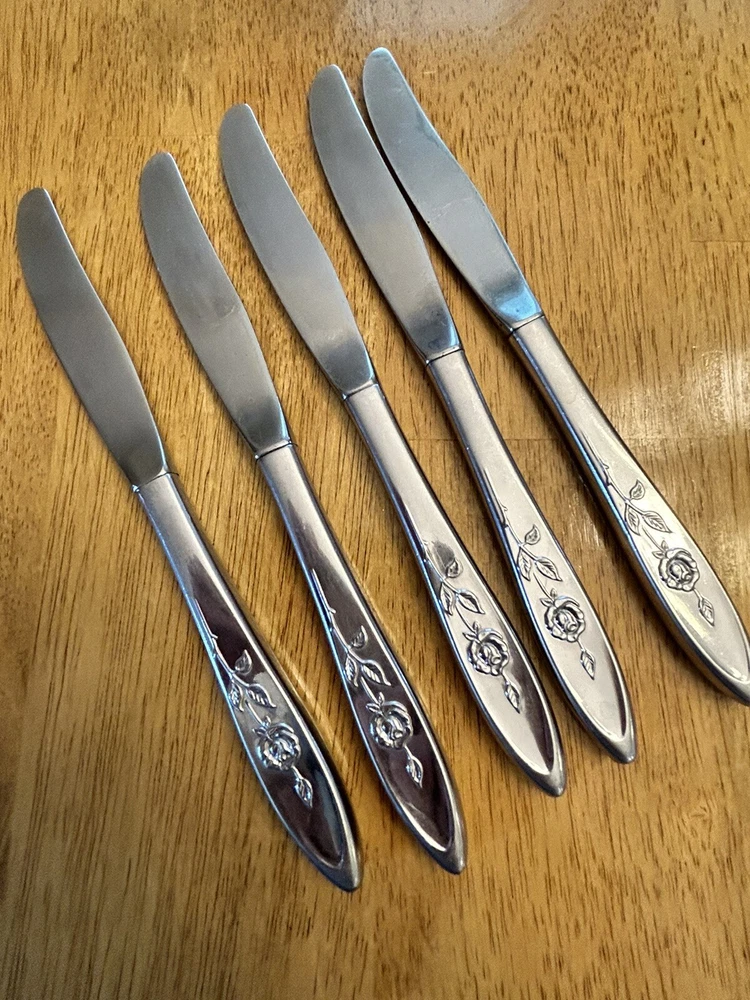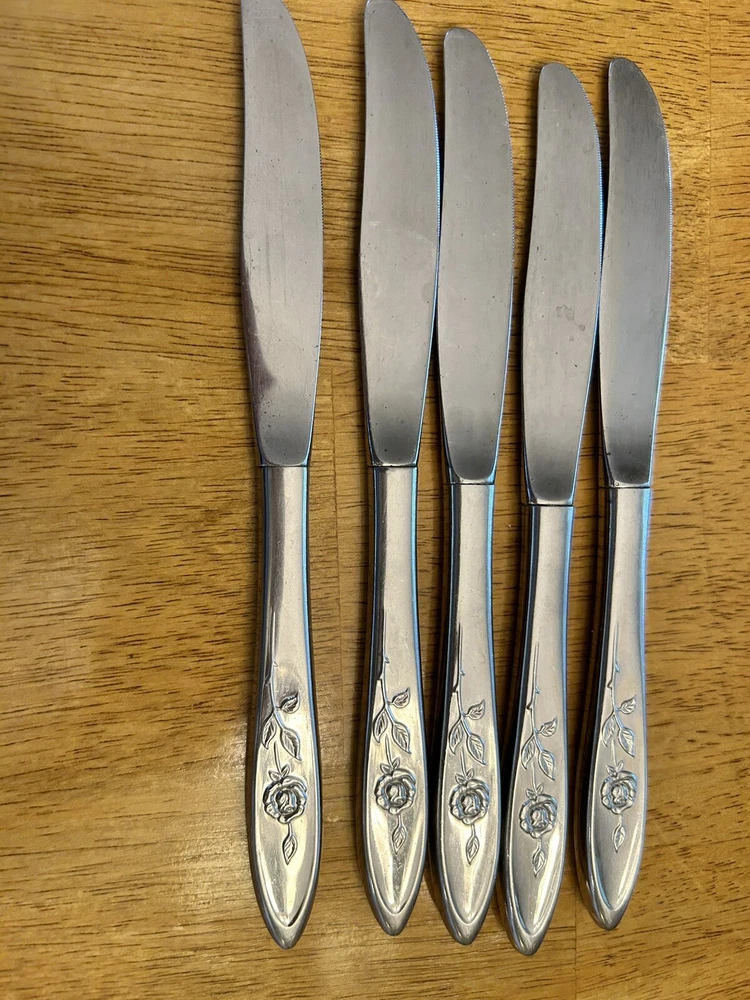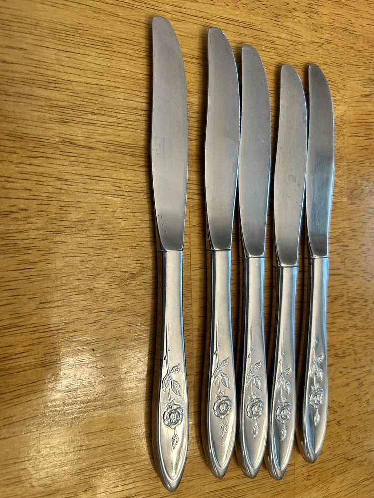 Vintage Oneida MY ROSE Community Flatware Set of 5 Dinner Butter Knives Betty Crocker Used vintage condition- refer to pics scuffing/scratching due to age & use