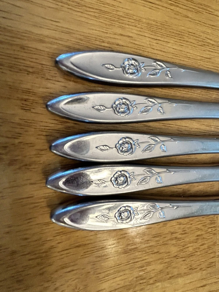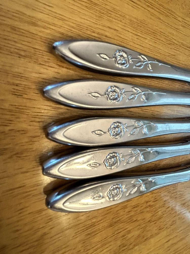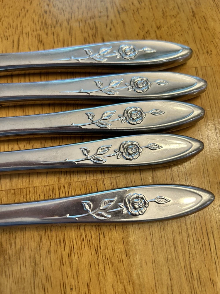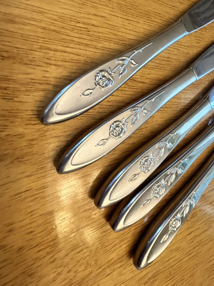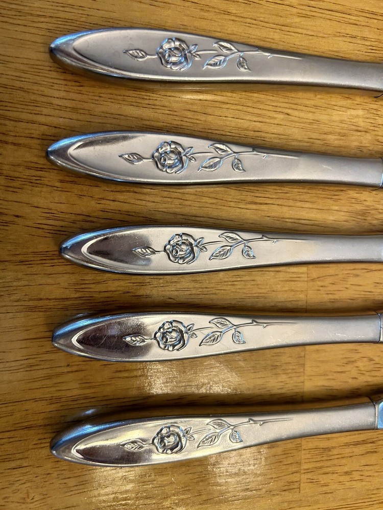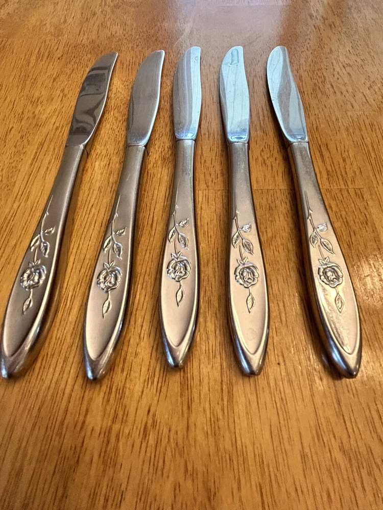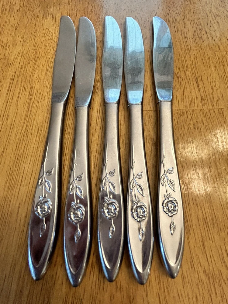 Vintage Oneida MY ROSE Community Flatware Set of 5 Dinner Butter Knives Betty Crocker Used vintage condition- refer to pics scuffing/scratching due to age & use