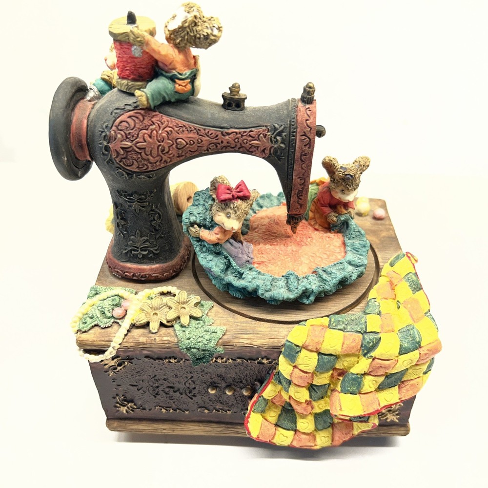Vintage Sewing Machine with Mice Music Box “My Favorite Things” Resin – Working Category: Vintage Figurines • Music Boxes • Collectibles Era: Late 20th Century Material: Resin with painted details Dimensions: Approximately inches Condition: Used. Working. No box or packaging. Please carefully review pictures. MOUSE EAR IS MISSING. Item Description This charming resin music box features an old‑fashioned sewing machine brought to life by a pair of whimsical mice, creating a cozy scene full of personality and nostalgia. When wound, it plays “My Favorite Things,” adding a warm, familiar melody that enhances its storybook feel. The piece is fully functional and displays beautifully, making it a lovely addition to a sewing room, craft space, or vintage‑themed collection. Its hand‑painted details and playful composition give it a timeless, heartwarming presence. This piece has been gently enjoyed and carefully preserved. It may show light signs of age consistent with vintage items, adding to its character and authenticity. Condition Notes All items are sold as-is in their current condition. Please review all photos carefully , as they are considered part of the description. Any notable wear, patina, or imperfections will be photographed and described. Shipping Ships within 3 business days of payment. Tracking provided through eBay once shipped. Packed with care to ensure safe arrival. If you need your item by a specific date, please message before purchase. Returns No returns unless the item is significantly not as described . Items must be returned in the same condition received. Please contact me promptly if you believe an item was misrepresented. Carrier Issues & Insurance If your package is delayed or missing, please contact the carrier first using the tracking number provided: USUS: 1‑800‑ASK‑USPS FedEx: 1‑800‑463‑3339 All items include additional insurance beyond standard carrier coverage. If the carrier cannot resolve the issue, I will file a claim to recover the item’s value. Thank you for your purchase. Your support means so much, and I hope this vintage piece brings warmth and character to your home. Curated Vintage Home Goods & Collectibles Thoughtfully Selected • Carefully Packed • Shipped with Care