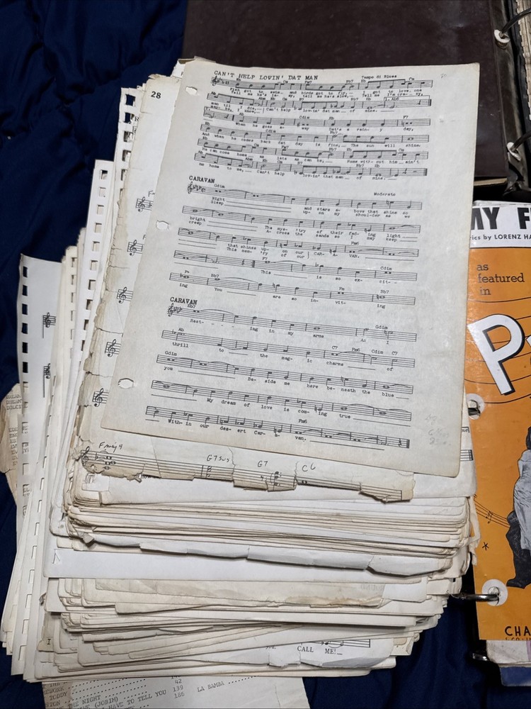 Massive vintage sheet music collection spanning early 1900s through the 1950s/60s. This is a large, well-preserved lot featuring approximately 1,100–1,500+ pages of original sheet music. Includes: * Jazz standards, Broadway, and classic American songbook pieces * Notable titles/artists (including Pal Joey and Sinatra-era material) * Organized in binders plus additional loose stacks * Original vintage prints — not reproductions Condition: * Overall good vintage condition * Some wear, edge damage, and aging consistent with age * Binders show use but hold pages well This is an excellent lot for: * Collectors * Musicians / pianists * Resellers (strong individual resale potential) Selling as one complete lot. Tons of history here.
