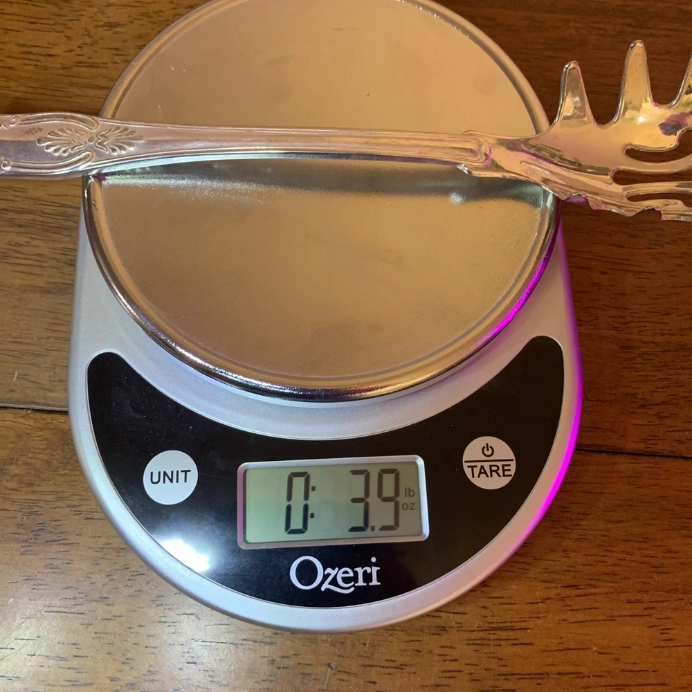 This vintage Sheffield Silver Co. 11" Silverplate Pasta Spoon Utensil is a high-quality silver utensil made in Italy. The spoon features a classic design with a beautiful silverplate finish, perfect for serving pasta or other dishes. Made by the renowned brand Sheffield, this pasta spoon is a timeless piece that adds a touch of elegance to any dining table. Ideal for collectors or those looking for unique and stylish silverware for their kitchen. Good condition but has wear from use and age.