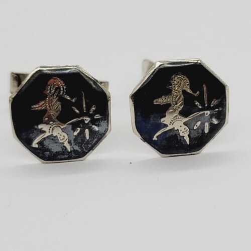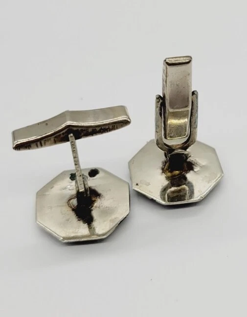 $ 21.74Mexican Sterling Cufflinks Maya Aztec Profile Inlaid Turquoise
