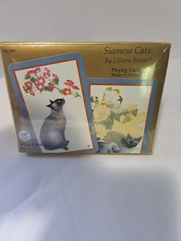 VTG Siamese Cat Liliane Baron Piatnik Playing Cards Bridge 2x55 Cards 2 Decks.... Condition is New. Shipped with USPS Ground Advantage.