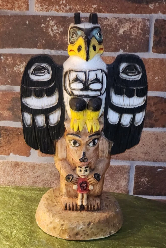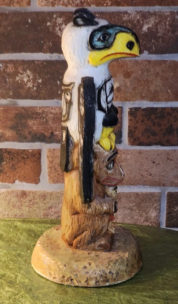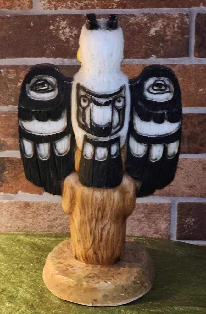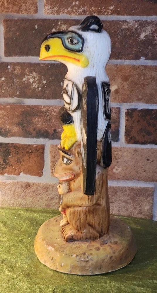 This unique sculpture is a vintage 1994 Castagna Original, made in Italy. The intricate carvings on this totem pole showcase a variety of subjects, including people and animals, with a 3D effect that enhances its beauty. This item is signed Castagna 1994 on the rear of the Totem Pole, on the upper side of the base. It is made of alabaster & resin. Castagna pieces are not mass produced. These pieces are no longer made. The colors are vibrant, and the size is medium, standing at 11ยฝ" in height and 8" in width. This piece is part of a collection of totem poles designed by the artist and is perfect for collectors of Native American style artwork. It is an original, manufactured in the late 20th century (1970-1999). The black & gold sicker on the base reads: " 188 Original By Castagna Made in Italy with a leaf design in the center. The bottom of the base is also stamped: 61232 F412 TOTEMPOLE This piece is in great shape and would make a stunning addition to any decorative collection. Please see photos for visual description and for proof of current condition. Any condition statement given is a personal opinion. I research every item and describe items to the best of my ability. I encourage potential buyers to also research my items, especially if they feel there is any question of accuracy in my listing. ๐๐๐ป I always refer to viewing pictures for the best description. Your item will be carefully packaged and shipped via USPS Mail. I always try to get items out in the mail the same day a payment clears, if possible. Feel free to ask questions prior to bidding. Thank You for stopping by to look! Feel free to stay a while and browse the many other items I have available to make their way to you! ๐