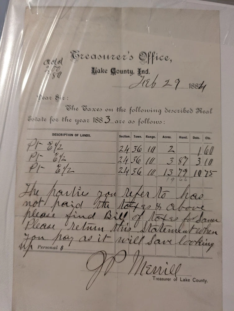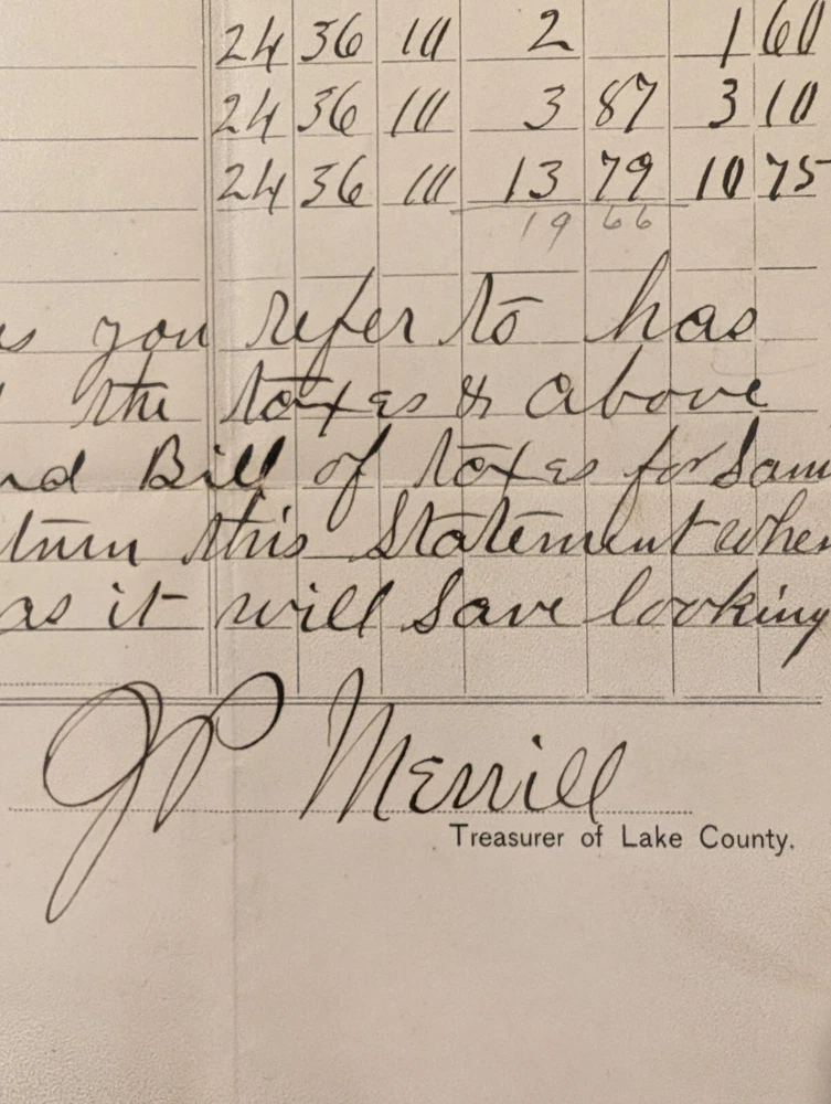 JOHN P. MERRILL was born in Ross Township October 13, 1842, and is the second of five children born to Dudley and Julia A. (Peters) Merrill, who were married in Ross Township January 1, 1840; his father was a farmer, and also kept a country store. John P. Merrill attended school until he was about nineteen years old, and afterward clerked in his father's store until August, 1862, when he enlisted in Company A, Ninety-ninth Indiana Volunteer Infantry; he served as Sergeant until October 31, 1864, when he was appointed First Lieutenant, a position he held with honor. He was at the siege of Vicksburg, at Jackson, Mission Ridge, Resaca, and went through to Raleigh; he returned to his home at Merrillville, Ross Township, June 15, 1865; he relieved his sister of her place in his father's store, taken by her in his absence. In 1867, he and his brother Oliver were given the store by their father. On March 26, 1867, he married Martha T. Randolph, daughter of Josiah and Alla (Mead) Randolph, and to this union four children were born -- Julia A. (September 11, 1868), Walter J. (October 18, 1871), Ralph D., deceased (August 17, 1875), and Alla C. (June 21, 1877). In 1878, he bought his brother Oliver's interest in the store, which he still continues; he is also President and Treasurer of the Merrillville Cheese Factory. In 1869, he was elected Township Trustee, which he held until 1874; he was then put in nomination by the Independent and Democratic joint conventions, held at Crown Point, for the office of the Treasurer of Lake County. In 1878, he was again elected Township Trustee, holding the office four years, re-elected in 1882; his many friends desire to see him Treasurer of the county, for which office he has been indorsed by the Greenback and Democratic Conventions, and it is thought his chances for election are good.