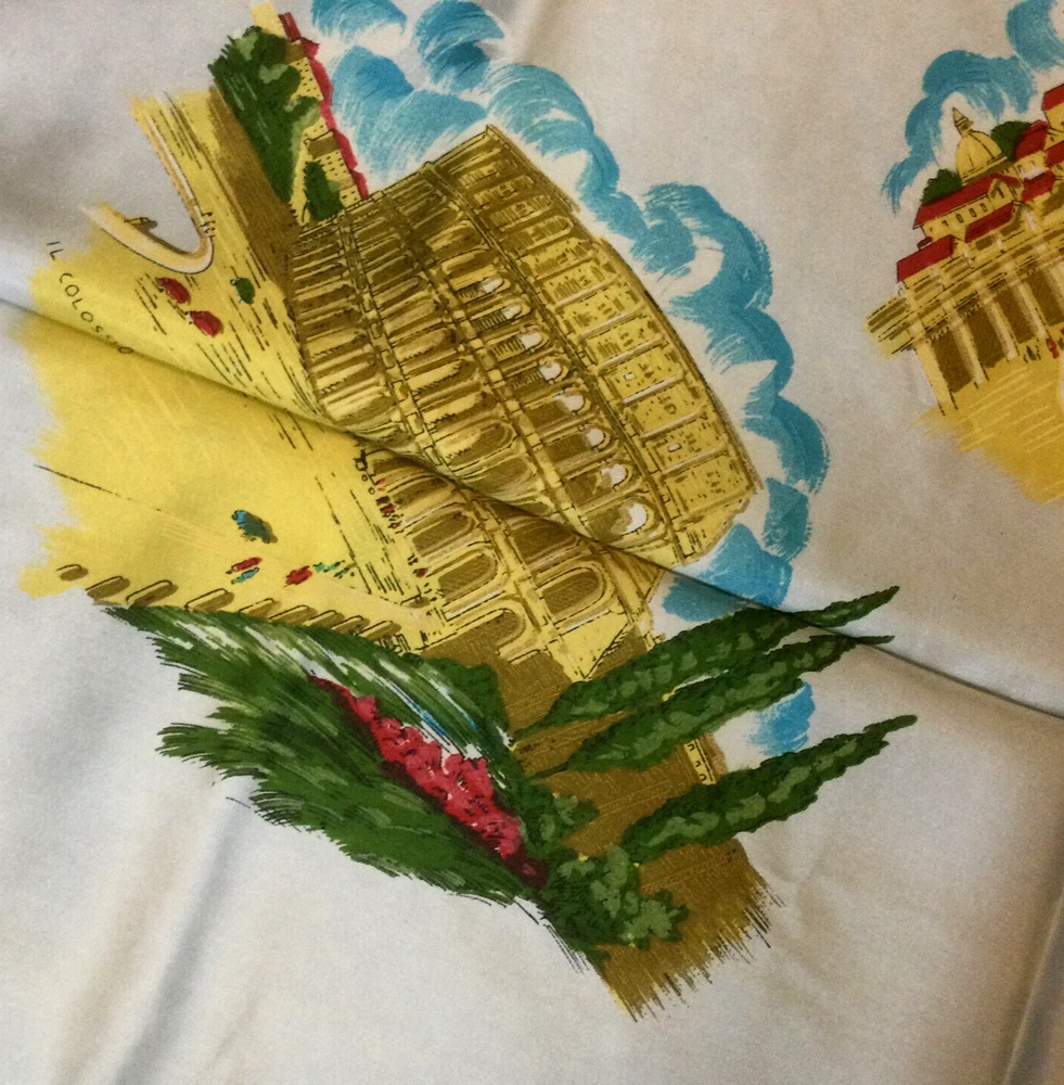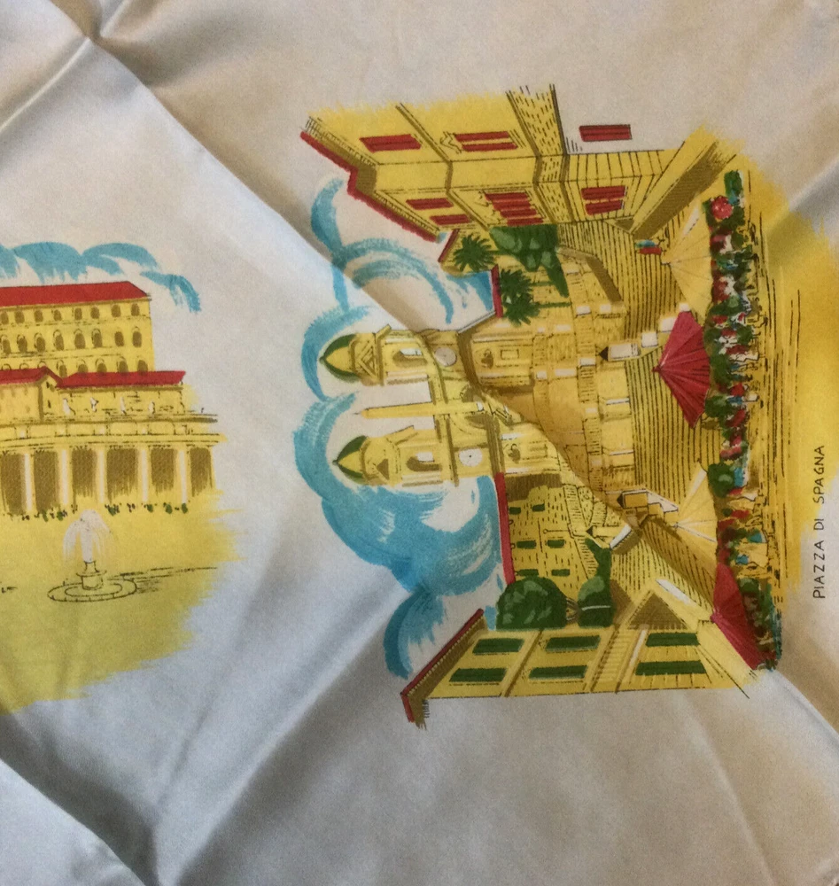 Vintage Silk Square Scarf Architecture Roma Italy Light Blue Yellow 30x30. Hand stitched edges. Very good condition, no damage, no stains . Never used. InvN/ES/4