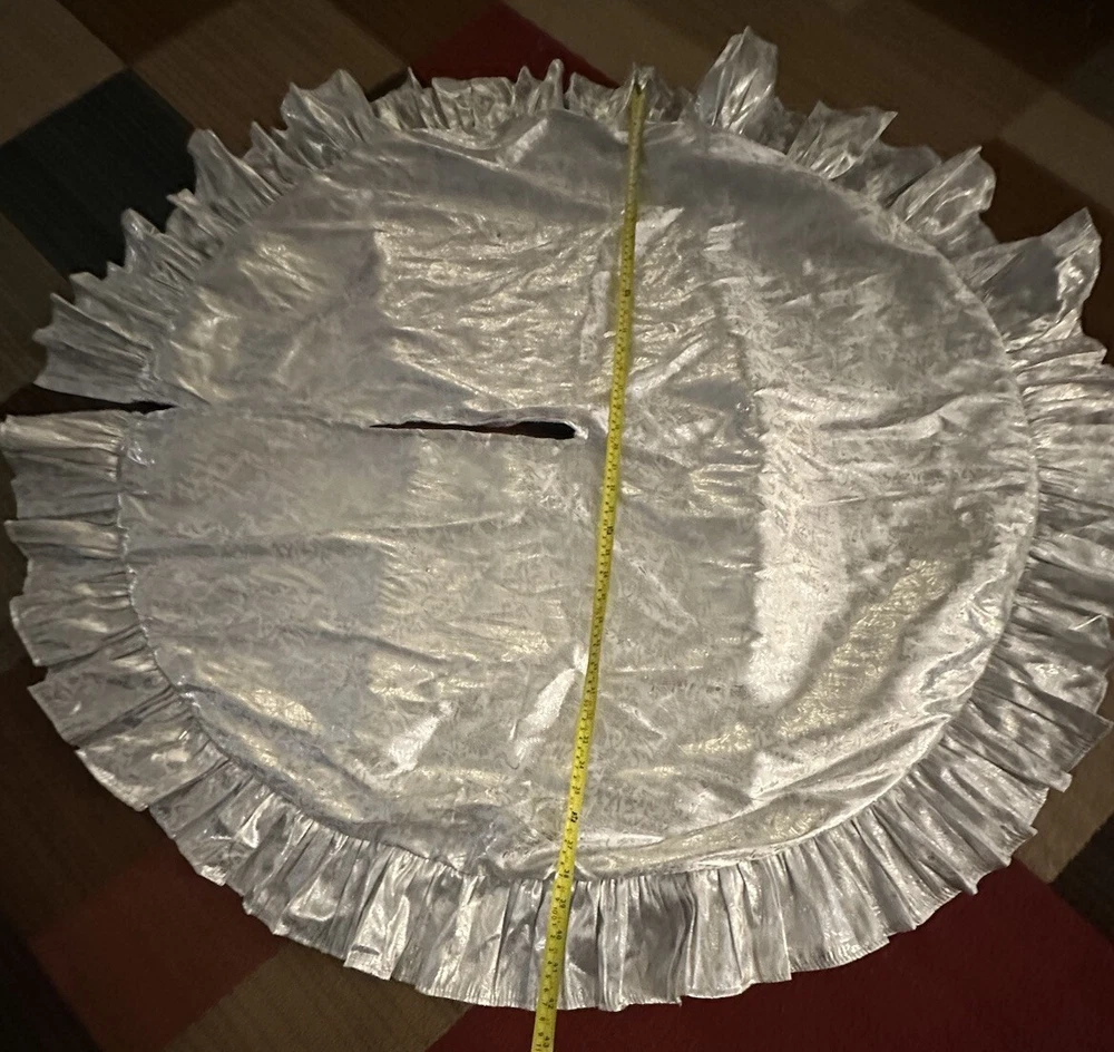 Vintage Silver Christmas Tree Skirt Please see pictures for measurements Thanks for shopping at My Little Hilly Billy Shop