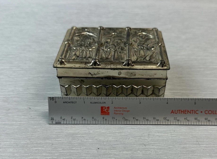 Department:AdultsHandmade:NoTheme:RoyaltyType:Trinket BoxColor:SilverOriginal/Reproduction:OriginalFeatures:BoxedMaterial:SilverCustomized:NoOccasion:All OccasionsBrand:UnbrandedCare Instructions:Clean with Damp ClothNumber in Pack:1Collection:NativityRoom:Any Room