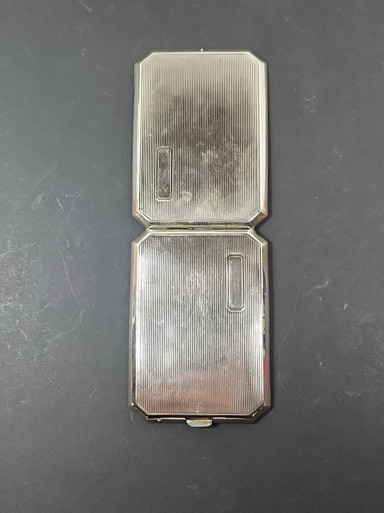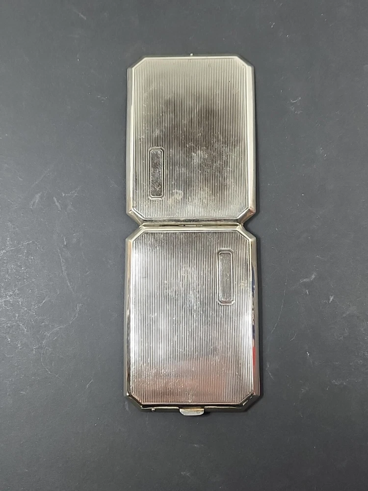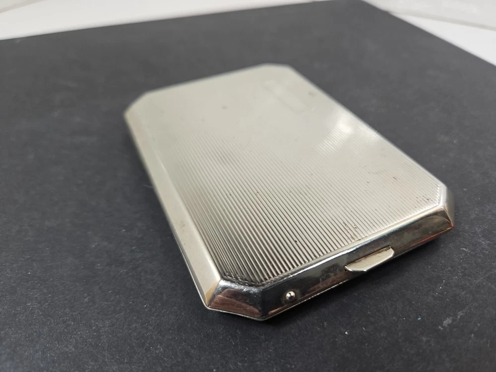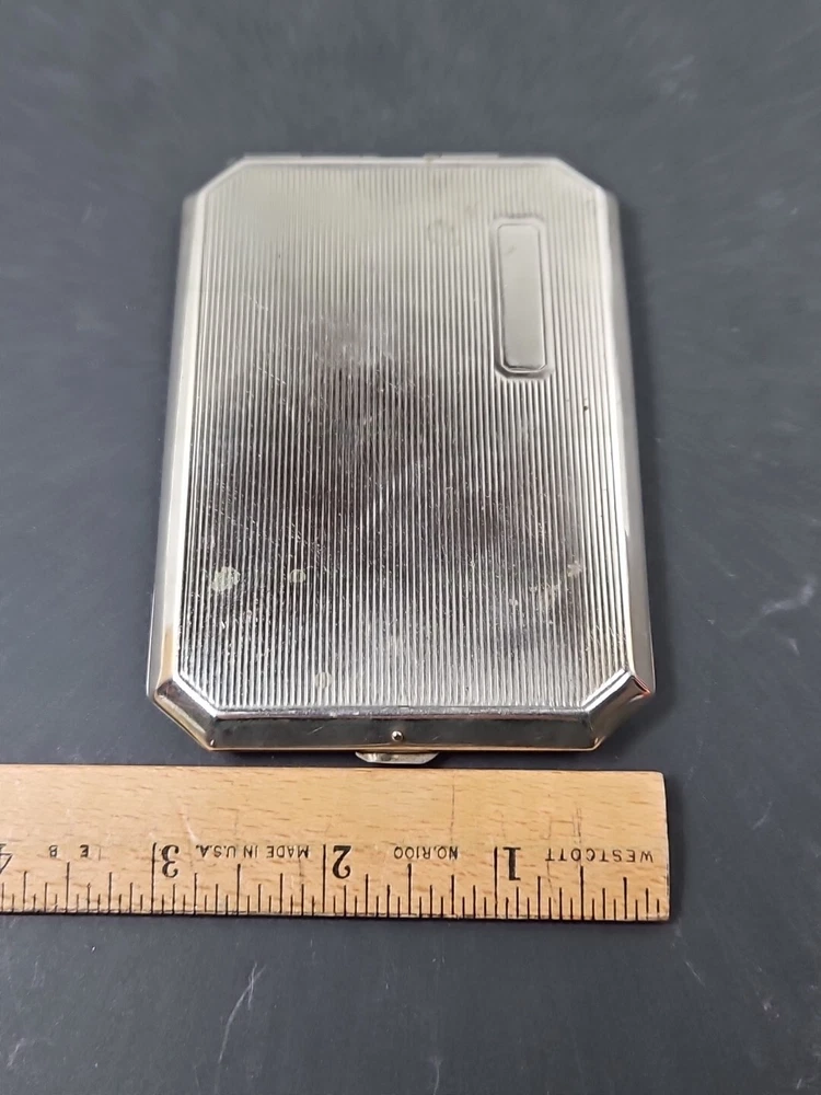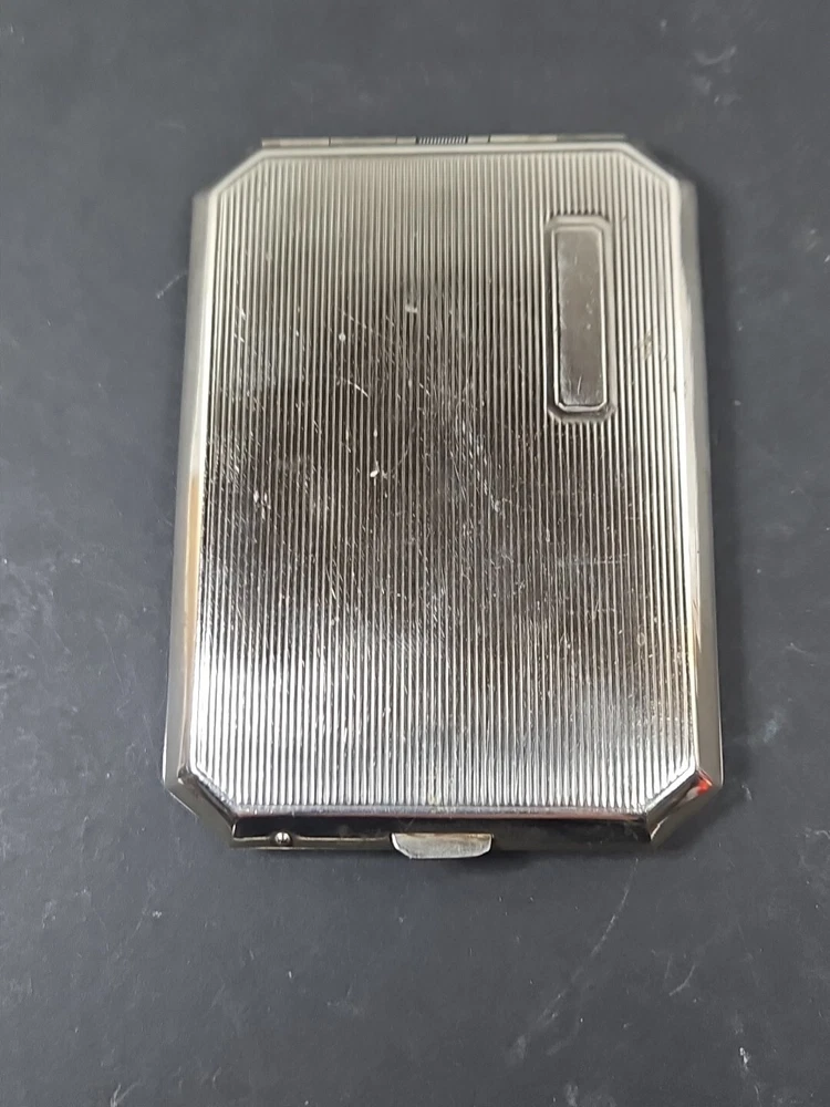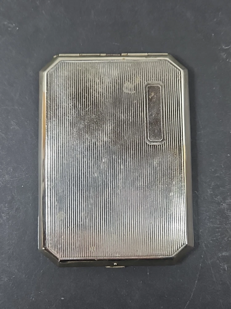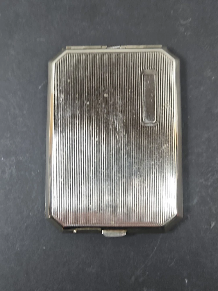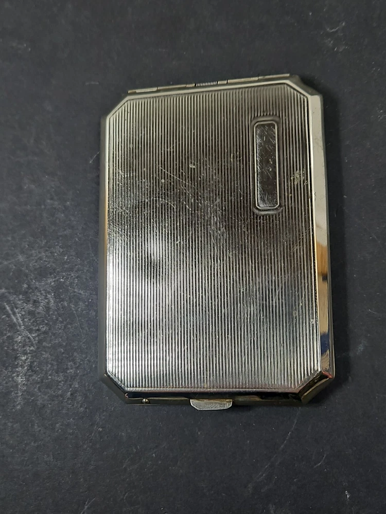 Vintage Silver Tone Cigarette Case Holder Vertical Line Pattern Button Lock GUC Unbranded. Product will be shipped timely and packaged with care. Offers are encouraged. Please feel free to reach out with questions. Please see pictures. Thank you. Good used condition. Light wear from age and use. Markings from age and use. See pictures Light patina and oxidation from age. See pictures. Small dent as seen. This vintage cigarette case holder features a silver tone with a vertical line pattern and a button lock mechanism. It was manufactured in Hong Kong and has not been modified. The item is in good used condition. MC8