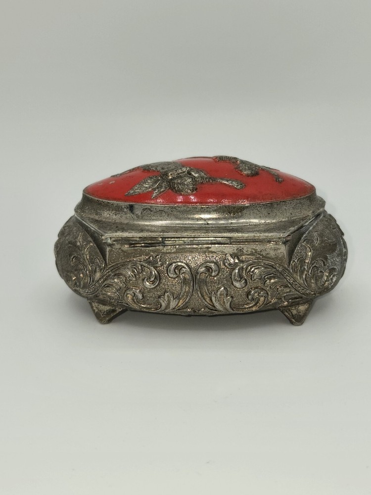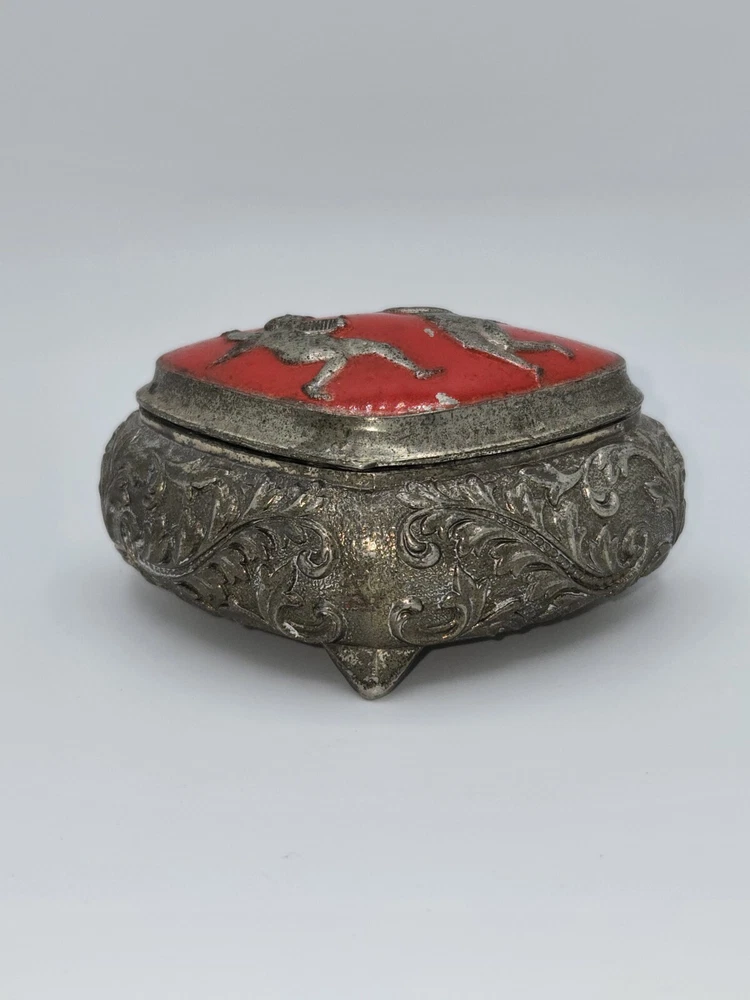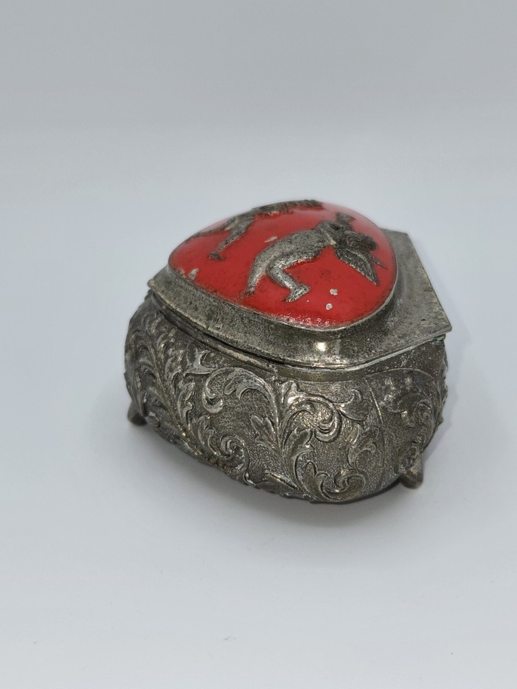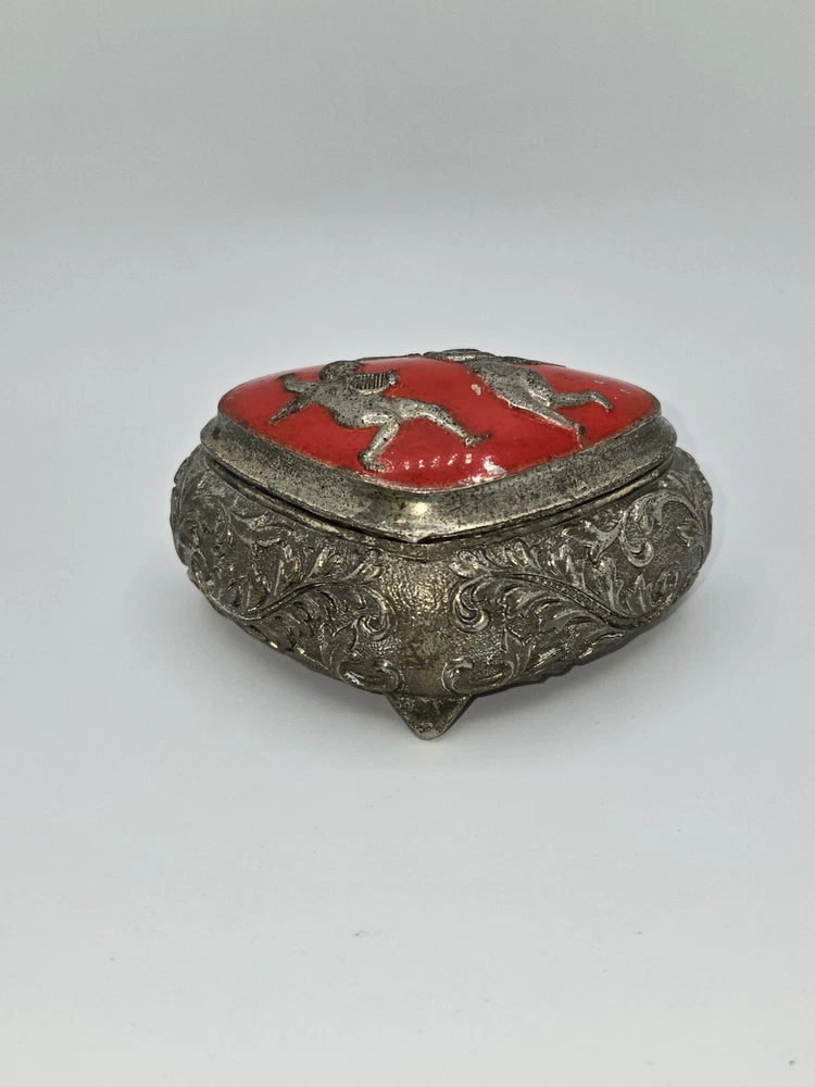 Vintage Silver-Plated Red Cherub Jewelry Trinket Box