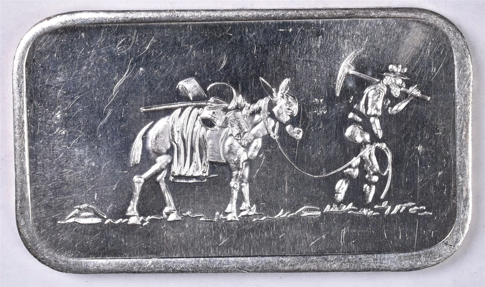 Vintage SilverTowne Prospector & Mule 1 oz Silver Bar 0.999 Item in photos is the actual item you will receive, except when "STOCK PHOTOS" is noted above. Item ID: 77535 Shipping: We combine shipping for multiple item purchases - MUST BE PAID TOGETHER! PLEASE - Bid and buy at your leisure for combined shipping - we request you pay combined items within 10 days of first item won. We are unable to honor requests for combined shipping discounts if items have been paid separately. eBay does show our combined shipping on the shipping tab. If you're purchasing a large number of items, or several boxed items, request a total from seller and we'll pre-pack to get you an accurate shipping cost. We use Flat Rate mailing supplies as much as possible. FAST shipping via United States Postal Service (USPS) We ship Monday - Friday every week, excluding holidays. Most orders paid by 10AM Eastern Time on weekdays will ship same day. When your order is ready for dispatch: - Tracking will be updated on the order details - Tracking will be e-mailed to your registered eBay e-mail address - Positive feedback will be left. If you have not received tracking details or Positive Feedback within 5 days of your payment, contact us through your order details page. Insurance: Your investment is covered by third party parcel insurance and/or U.S. Postal Service Insurance. By bidding/buying, you agree to cooperate with the insurance claims process on lost, stolen, or damaged shipments. If you would like details on the claims process before bidding, feel free to e-mail us. Tax: eBay collects and administers the Sales Tax on a per-state basis. We have no control over the administration of tax. Requests for refunds of Sales Tax will not be honored. If you feel an exemption is warranted, we can only recommend you contact eBay directly. Returns: We accept returns for refund on all unaltered items within 30 days. - Coins removed from their packaging are non returnable. - Items sold as sealed or unopened are non returnable if opened. - We do not charge a restocking fee nor do we refund postage charges. All returns must be handled through eBay's automated return process. No returns on items marked FINAL SALE or AS-IS.