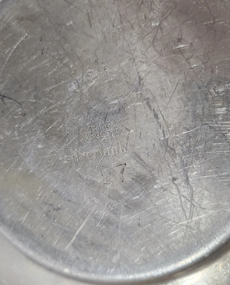 Set Includes:Pan LidColor:SilverVintage:YesMaterial:AluminumItem Width:10"Type:Bun WarmerAntique:NoStove Type Compatibility:Electric, GasOriginal/Licensed Reproduction:OriginalBrand:SilverlochSeller Notes:“Good vintage condition. Has scratches”Number of Items in Set:Two-PieceItem Diameter:10"Shape:Round