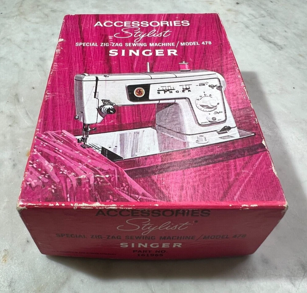 Vintage Singer sewing Machine Zig Zag Accessories Model 478 In Original Box Part #No 161965 Made in GREAT BRITAIN Pre-owned good condition shelf wear to The Box Please Check Pictures For best reference